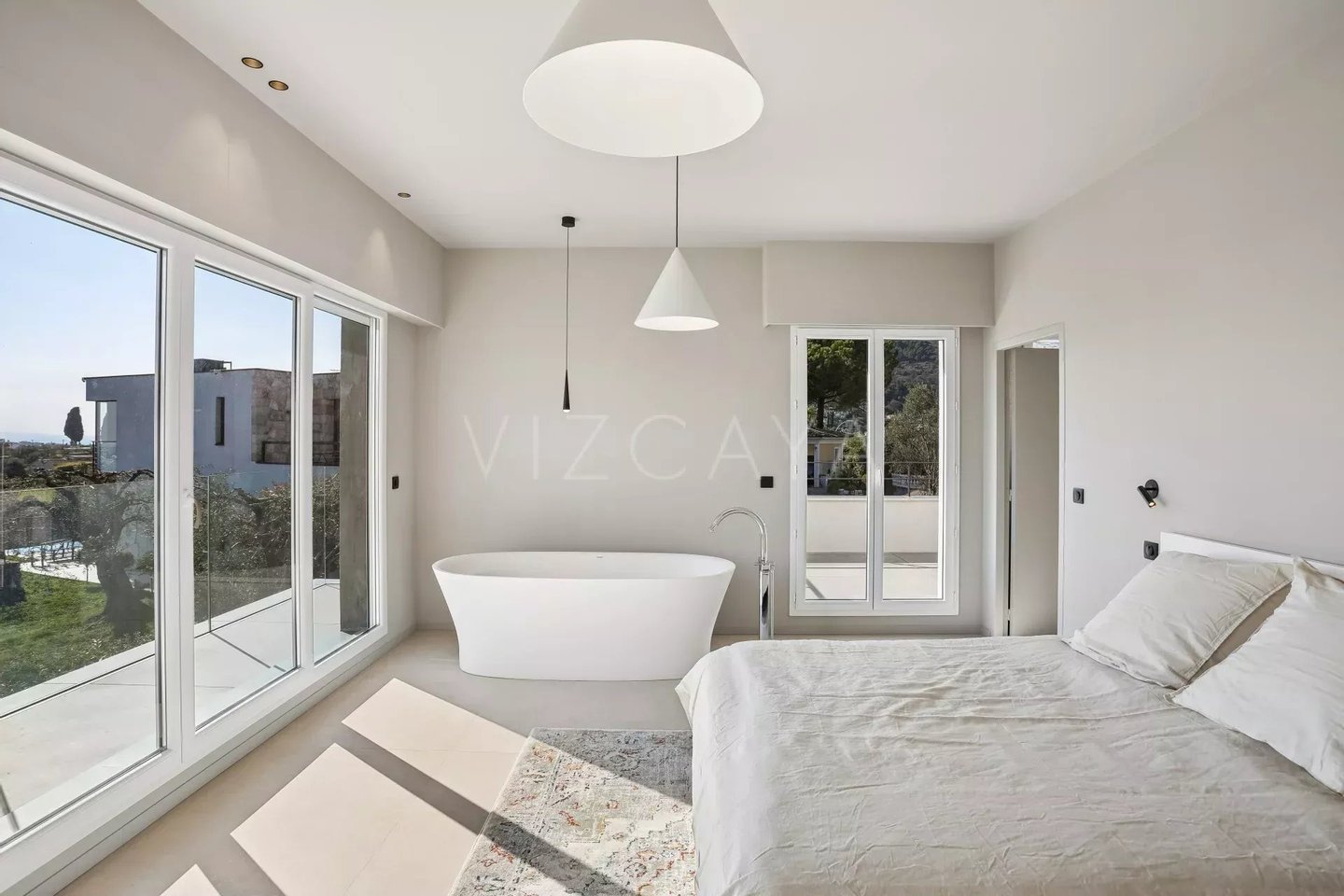 Entdecken Sie diese moderne Villa in perfektem Zustand, gelegen in einer ruhigen Umgebung auf den Hügeln oberhalb von Rimiez. Ein schlüsselfertiges Haus, das dank seiner idealen Ausrichtung im Licht getaucht ist und von seinen Terrassen aus einen wunderschönen Meeresblick bietet.