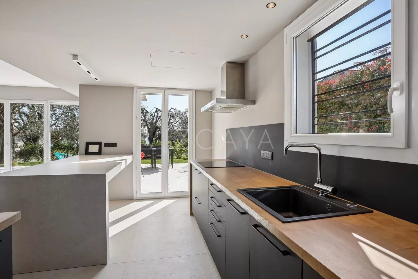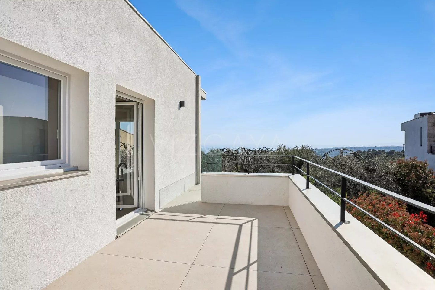 Entdecken Sie diese moderne Villa in perfektem Zustand, gelegen in einer ruhigen Umgebung auf den Hügeln oberhalb von Rimiez. Ein schlüsselfertiges Haus, das dank seiner idealen Ausrichtung im Licht getaucht ist und von seinen Terrassen aus einen