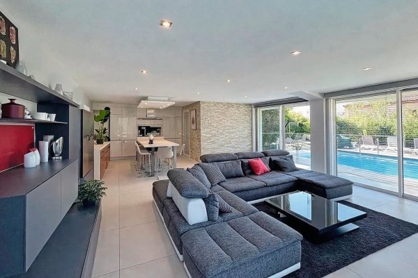 Gemeinsamer Agent. Moderne Villa mit Schwimmbad in Les Hauts de Vaugrenier. Wohnfläche 145 m² mit 5 Haupträumen, die nach Südwesten ausgerichtet sind, alle auf einem Stockwerk, genießen völlige Ruhe und Frieden. Geräumiges Wohnzimmer mit offener Küche auf 55 m², vier Schlafzimmer einschließlich einer Master-Suite. Landschaftlich gestalteter Garten mit 600 m² sowie Schwimmbad, Freizeitbereich und Anbau. Reversible Klimaanlage. In der Nähe von Annehmlichkeiten. Privilegierte Lage auf diesem bewachten Anwesen in einer erhöhten Lage.