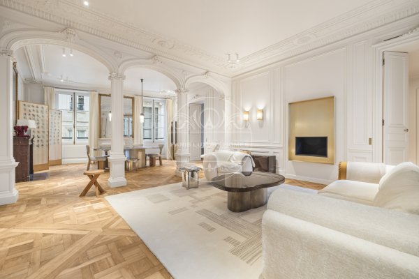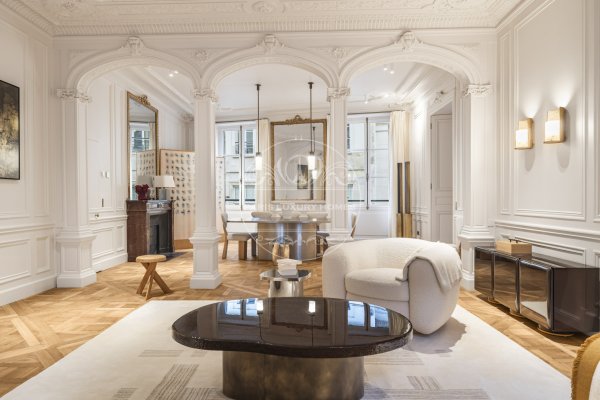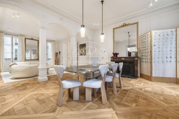 FOR SALE PARIS 6TH SAINT-GERMAIN-DES-PRÉS EXCEPTIONAL APARTMENT Located on rue Bonaparte, in the heart of Saint-Germain-des-Prés, a stone's throw from the Café de Flore, the Seine and the Saint-Germain church, we are pleased to present this superb apartment of 150 m2 (148.51m2 Carrez law) located on the 2nd noble floor with elevator of a luxury building with caretaker. Completely renovated by a renowned architect, it offers a double living room with remarkable volumes, sublimated by Versailles parquet flooring, magnificent moldings, a triple arcade and a functional fireplace. Adjoining dining room, fully equipped kitchen with utility room. The night area offers three suites, each with dressing room and private bathroom, one of which has a bathtub. Noble materials: natural stone, marble, custom-made woodwork. High-end services with underfloor heating, air conditioning, and exceptional renovation. Secure building with caretaker. A rare property, located in one of the most prestigious addresses in Paris. VERY UNIQUE TO SEIZE! TO VISIT WITHOUT FURTHER DELAY! Property offered exclusively by the PARIS LUXURY HOMES agency. Visits and information 7 days a week, virtual tour available on request.