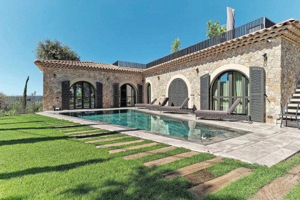 Outstanding renovated villa facing the beaches on Cap d’Antibes. Living space approx. 314 m² comprised of spacious reception rooms opening out to terraces, fully equipped kitchen, 6 en-suite bedrooms. Fully fitted well-being area (gym, hammam, sauna, massage), wine cellar and TV lounge. Roof-terrace fitted out with summer kitchen and independent suite. Garden, swimming pool, garage + parking space. A unique property on Cap d’Antibes !