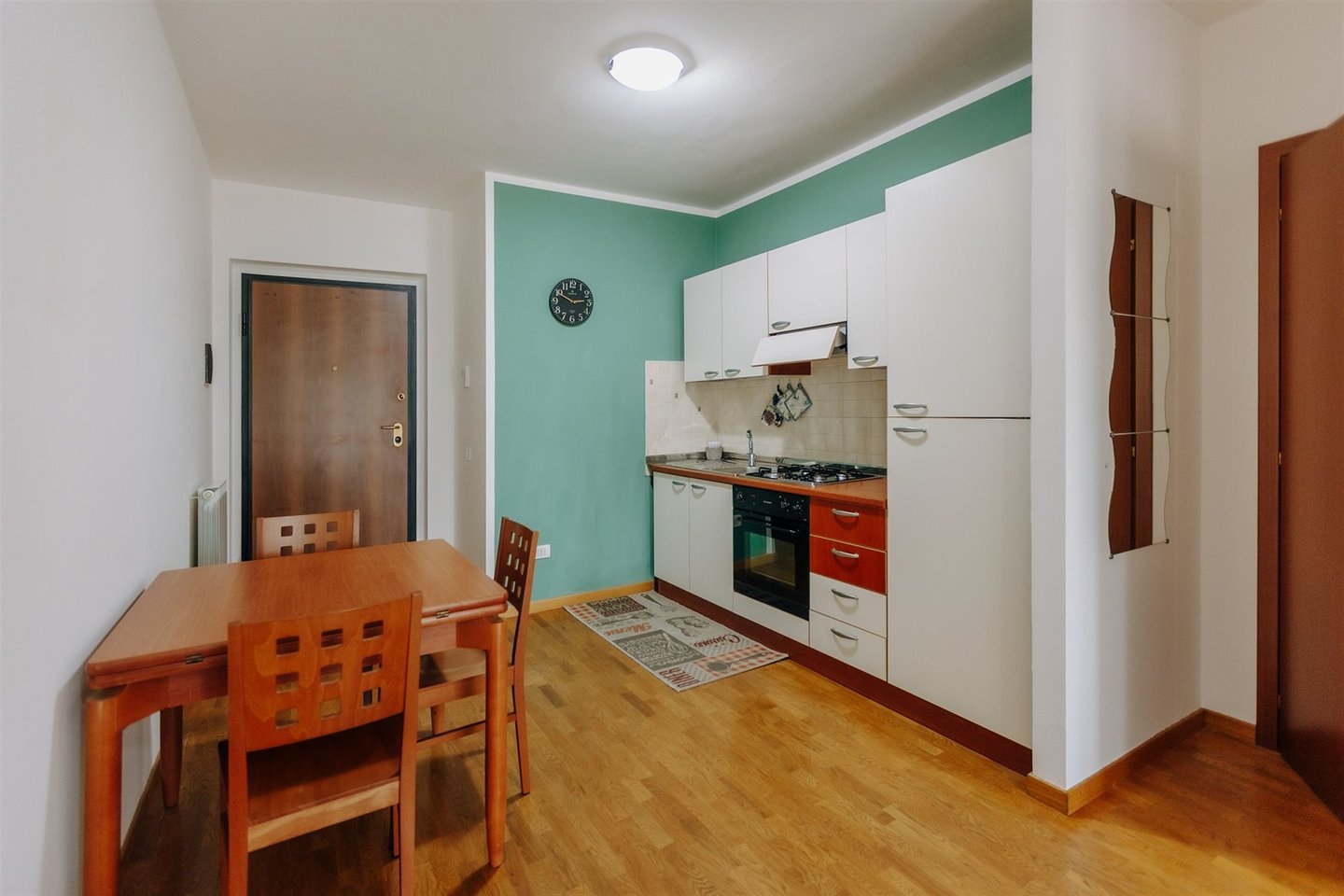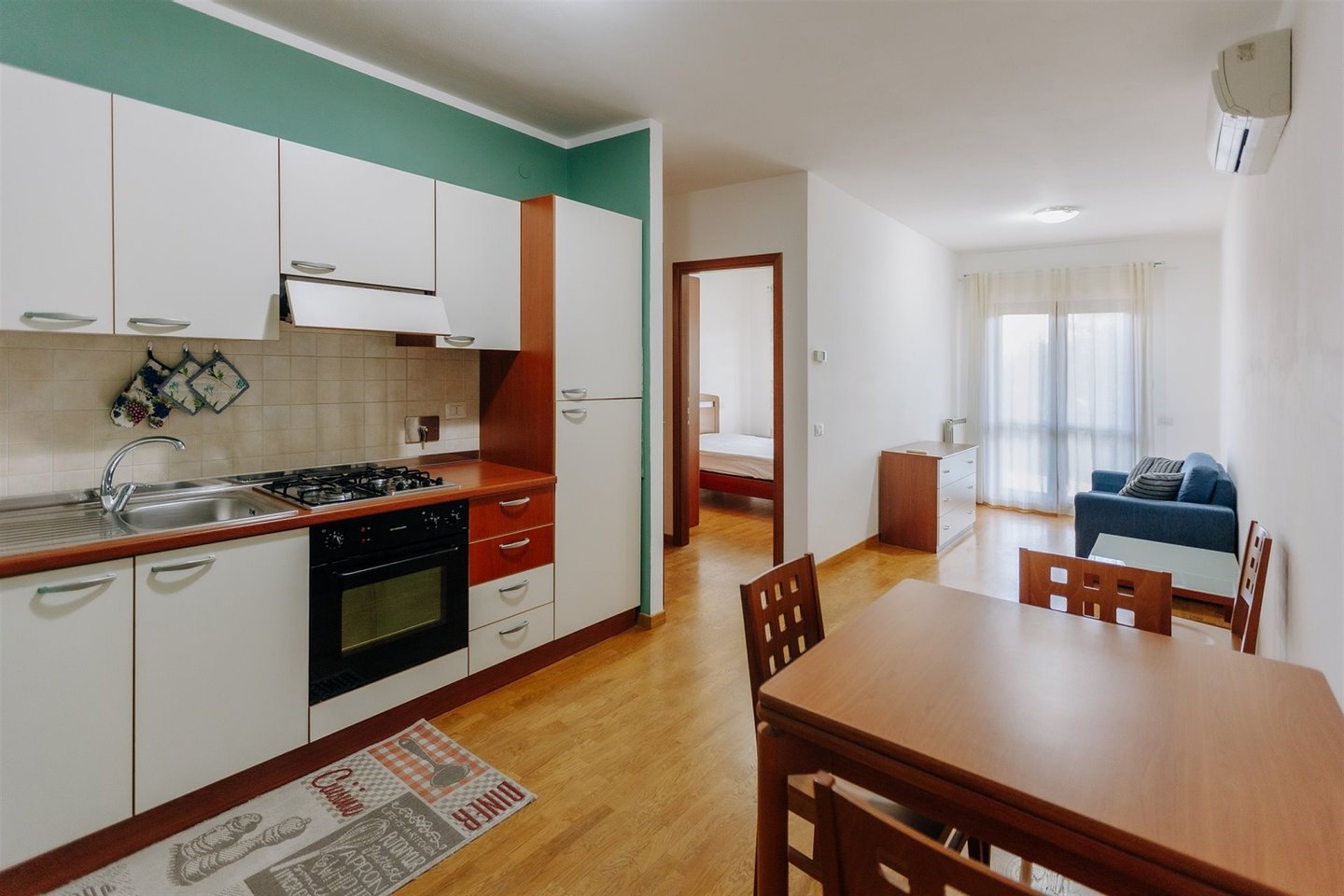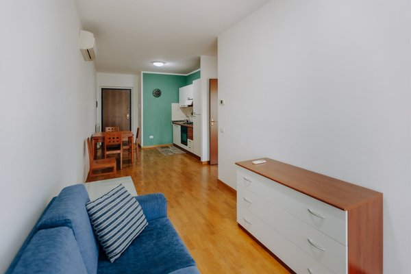 „Appartamento Petrolio“ - In einer Wohnanlage, deren Bau im Jahr 2004 abgeschlossen wurde, bieten wir dieses reizvolle Zweizimmer-Appartement im ersten Stock mit Aufzug zum Verkauf an. Es besteht aus: Eingang ins Wohnzimmer mit Kochnische und Zugang zur teilweise überdachten Terrasse, Flur, Schlafzimmer und ein helles Bad mit Badewanne.