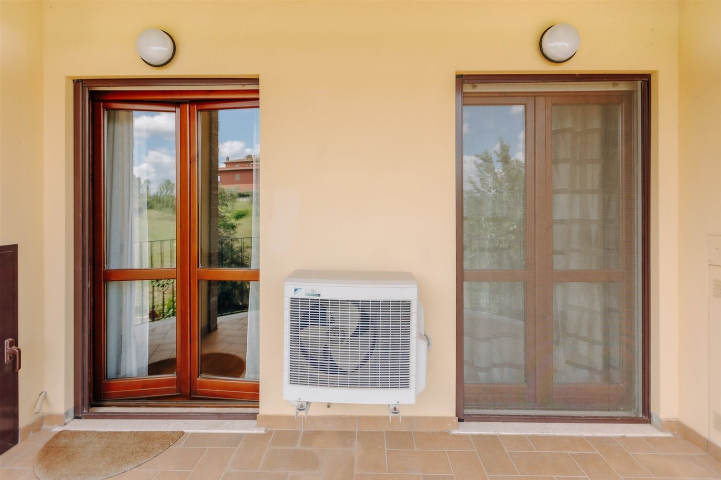Die Wohnung befindet sich in insgesamt sehr gutem Zustand mit hochwertiger Ausstattung. Ausgestattet mit Parkettboden, Holzfenstern mit Doppelverglasung, Fliegengittern und PVC-Rollläden, Alarmanlage, Klimaanlage, autonomer Heizung.