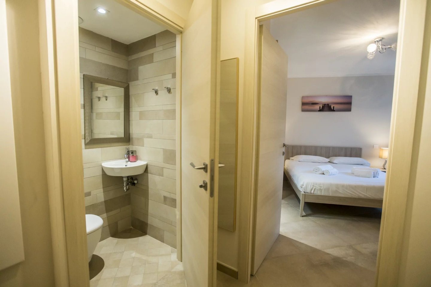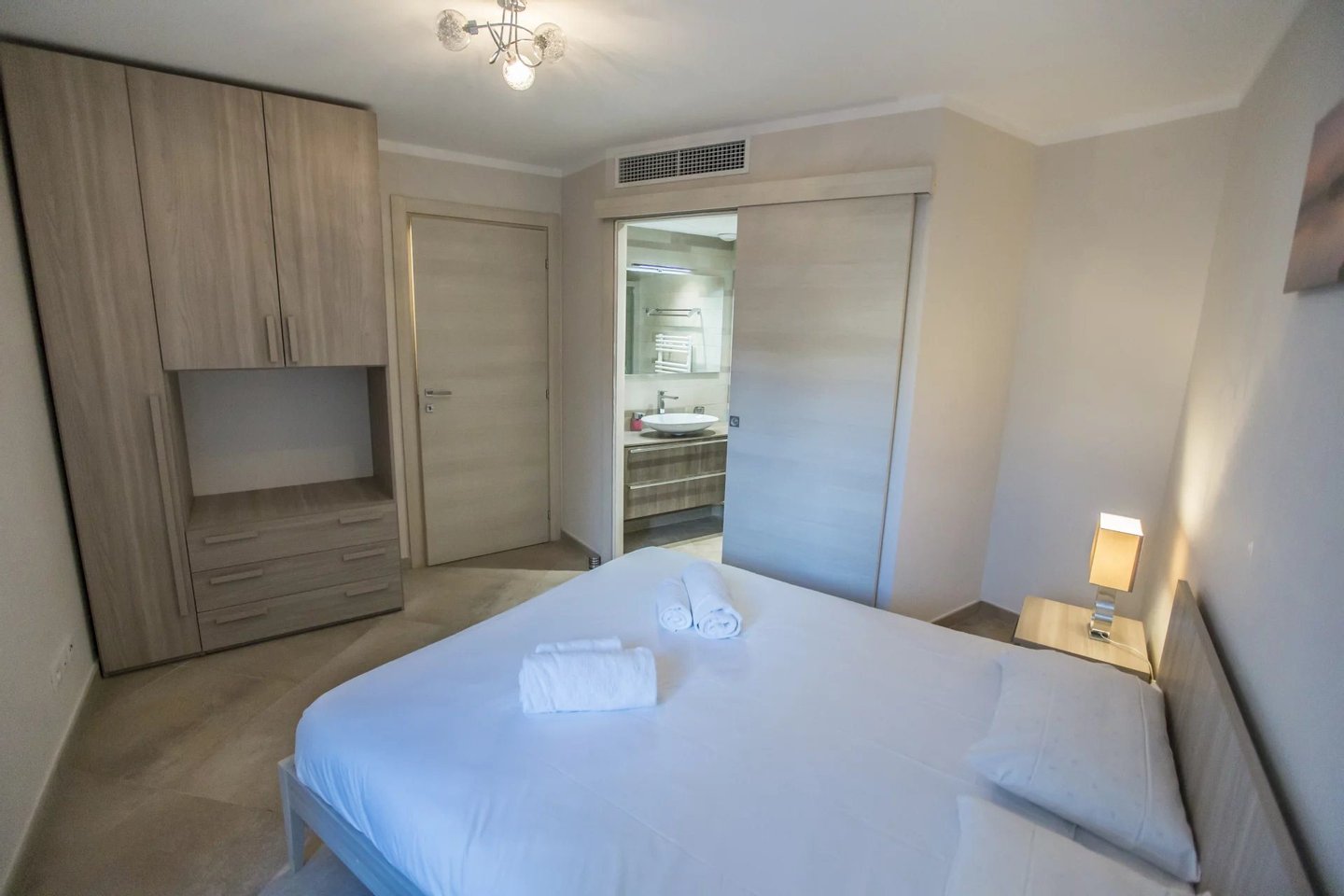 Die Wohnung besteht aus zwei Zimmern, darunter ein großes, komfortables Schlafzimmer, eine moderne Küche, perfekt ausgestattet, und ein zeitgenössisches Badezimmer. Die reversible Klimaanlage garantiert ganzjährig optimalen Komfort. Ihre sorgfältige Einrichtung und großzügige Volumina schaffen eine warme und einladende Atmosphäre.