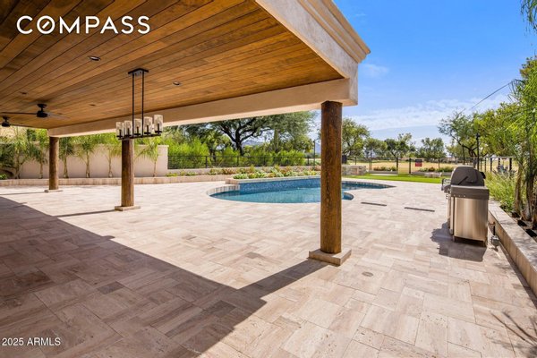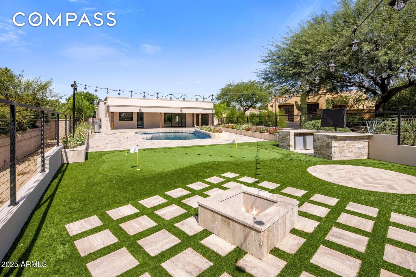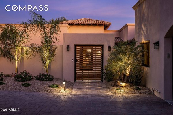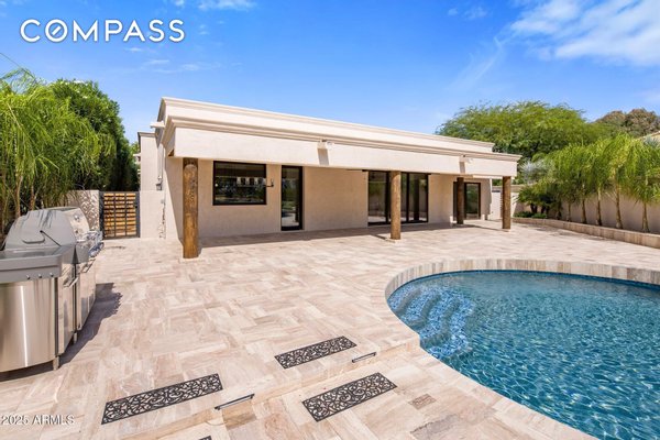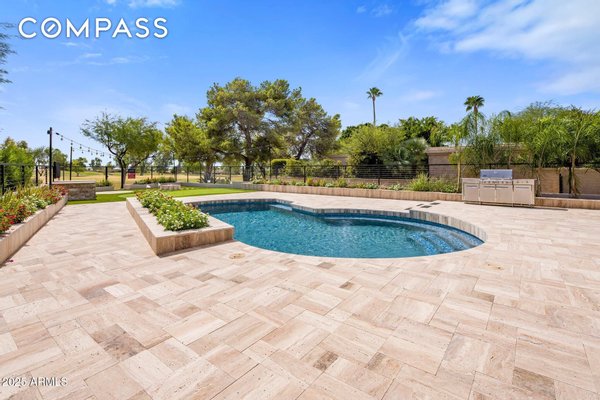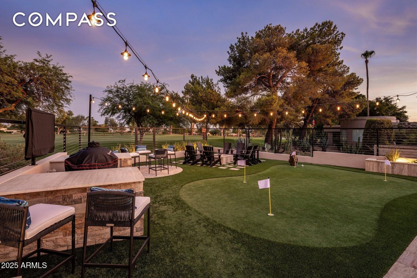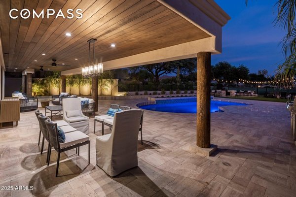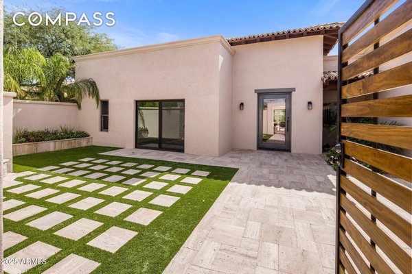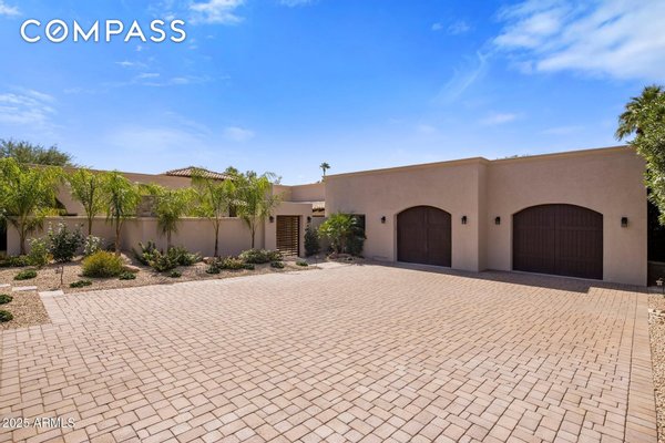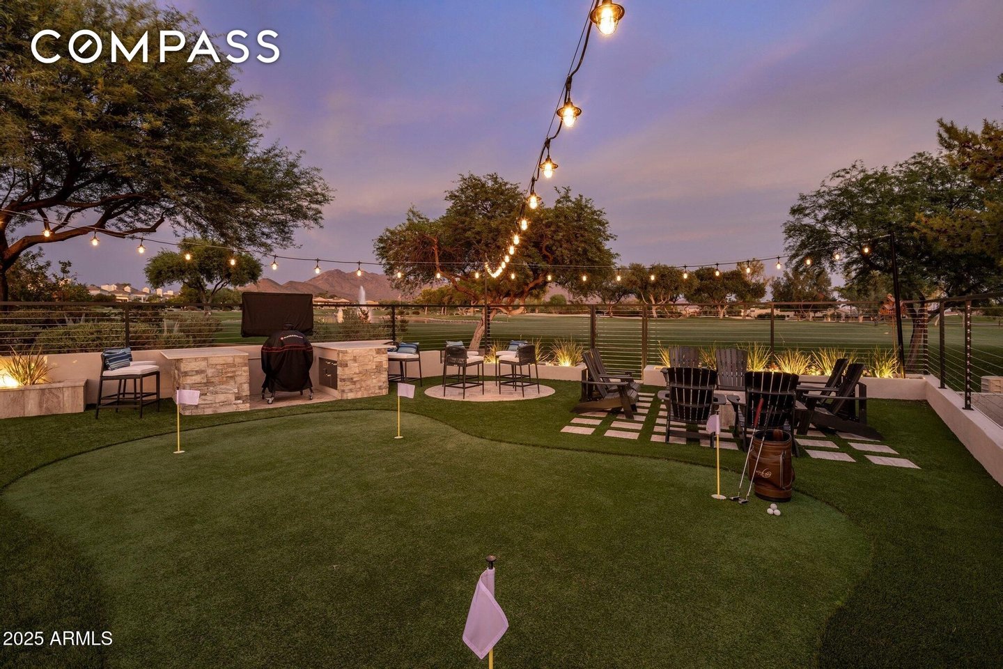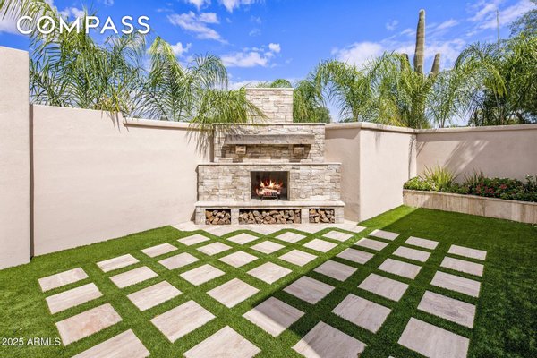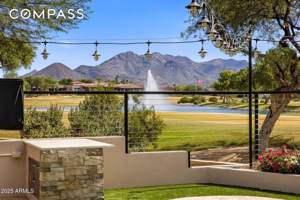 Exquisitely remodeled golf course residence in guard-gated Pinnacle Peak Country Club Estates of North Scottsdale, ideally positioned on a quiet cul-de-sac lot backing to the 8th fairway with sweeping golf course and McDowell Mountain views. This thoughtfully updated split-floorplan home offers 3 bedrooms, 3.5 bathrooms and an expansive paver motor court leading to an oversized climate-controlled 2.5-car garage with air conditioning and heat - perfect for car enthusiasts, collectors or hobby space. A lush private courtyard welcomes you with mature landscaping and a charming stone fireplace, creating an inviting entry and additional outdoor living space. Inside, rich hardwood flooring flows throughout the open living areas, where a spacious great room and custom built-in bar provide the perfect setting for entertaining. The gourmet chef's kitchen is beautifully appointed with a Sub-Zero refrigerator, DCS 6-burner gas range with double ovens, stainless microwave, KitchenAid dishwasher, quartz countertops, butler's pantry, dedicated coffee station and pass-through window for effortless indoor-outdoor entertaining. A designer powder room with custom wall coverings and elevated fixtures highlights the home's refined finishes. The desirable split layout offers a private primary retreat along with two separate guest suites, ideal for visitors or multigenerational living. Step outside to a resort-style backyard overlooking the pristine fairway and dramatic desert mountain backdrop, complete with a heated pool, putting green, fire pit and multiple lounge and dining areas designed for year-round Arizona living. A private gate provides direct access to the golf cart path--perfect for morning walks or sunset strolls along the private course. Located in one of North Scottsdale's most sought-after guard-gated golf communities, residents enjoy close proximity to world-class golf, Pinnacle Peak hiking trails, luxury dining including Mastro's and Lamp Pizzeria, Market Street shopping, and the premier lifestyle amenities of North Scottsdale.