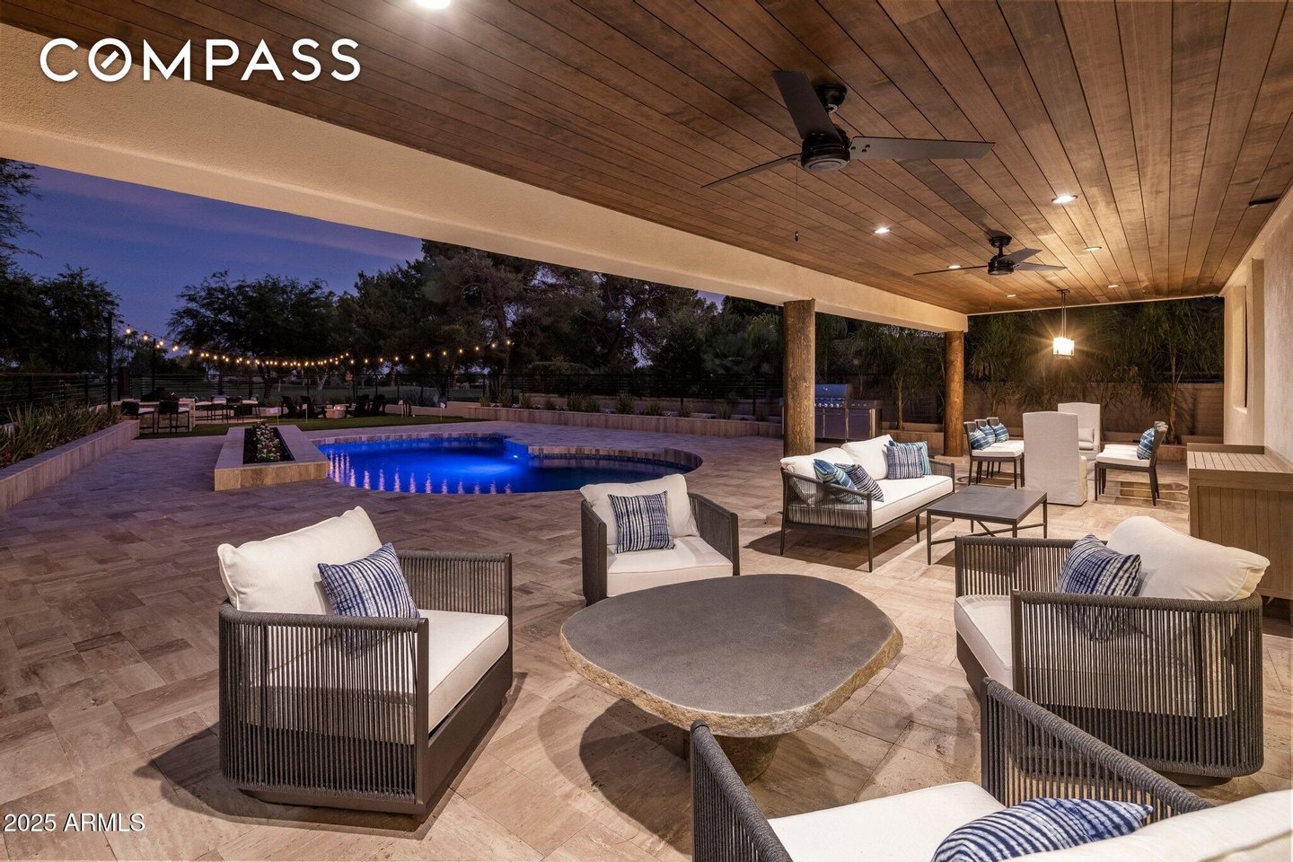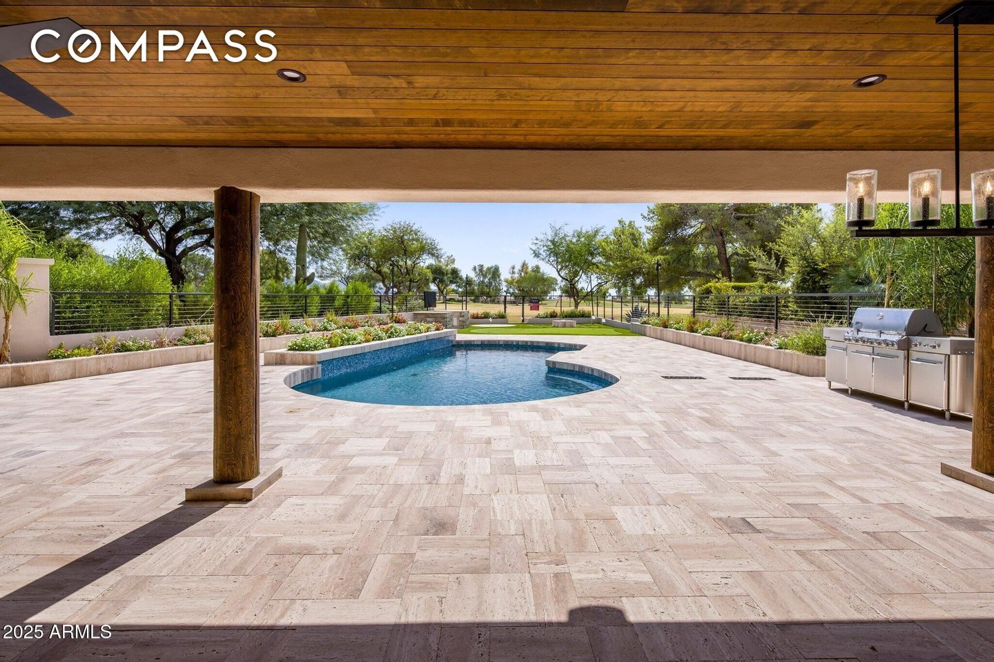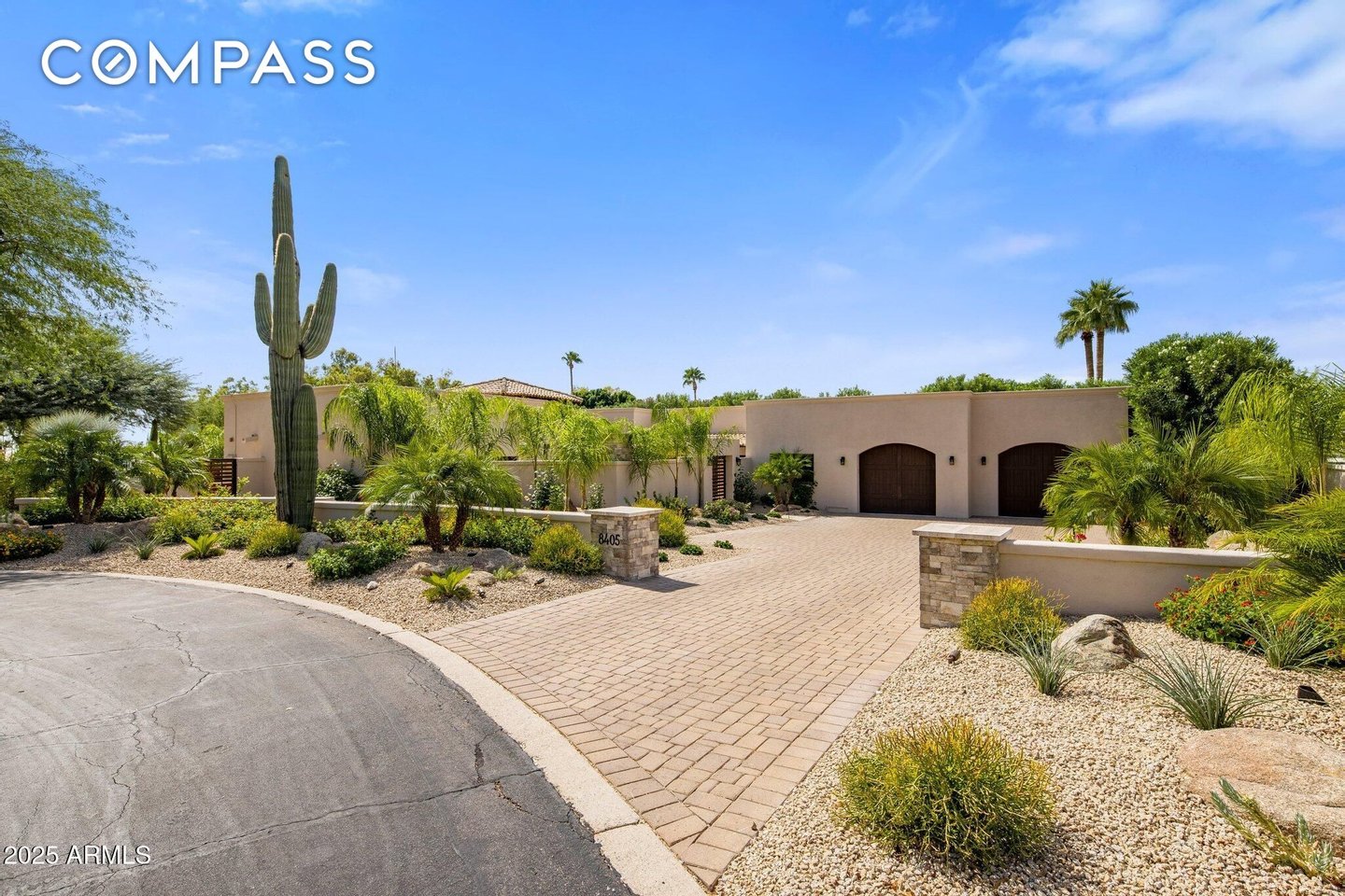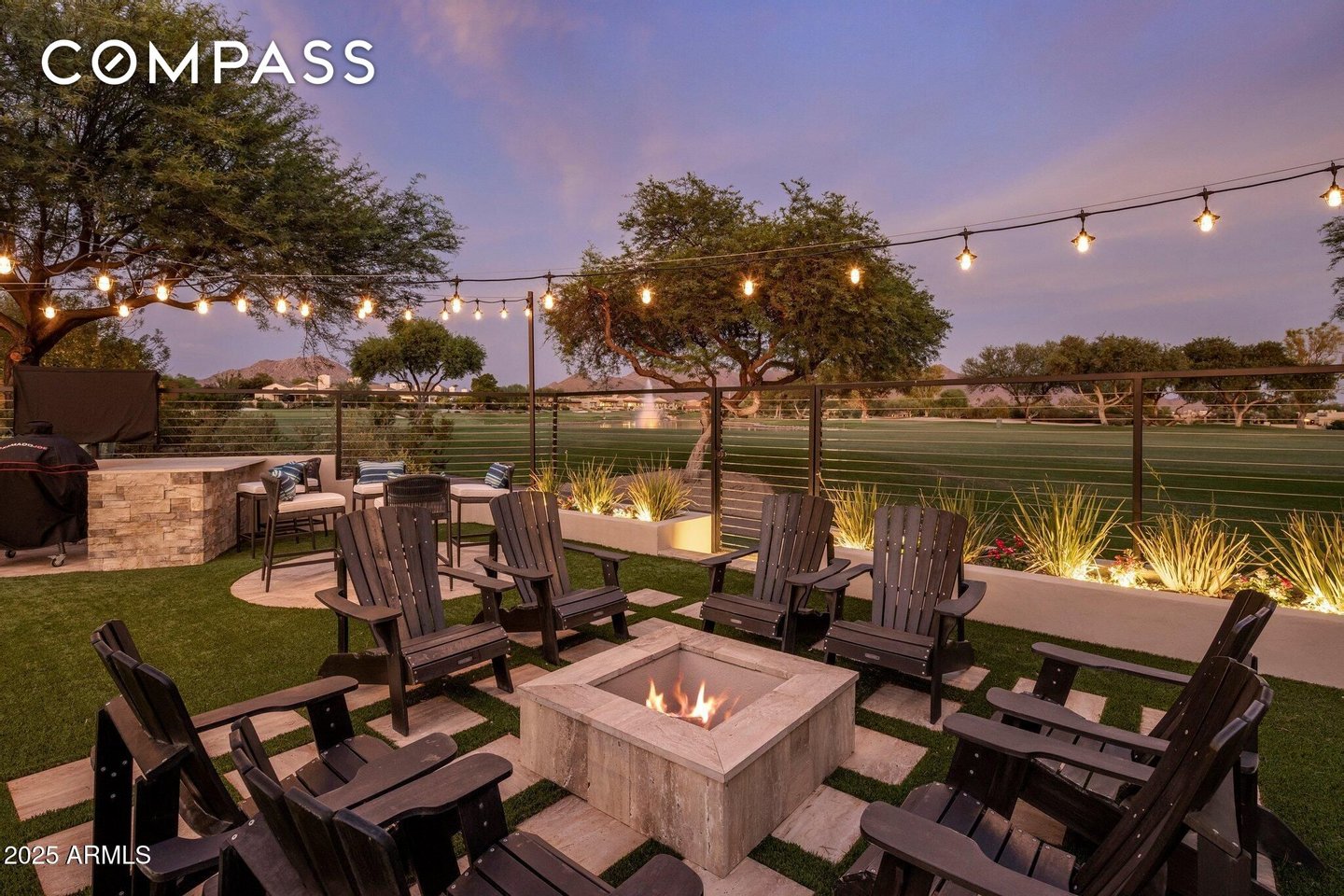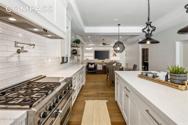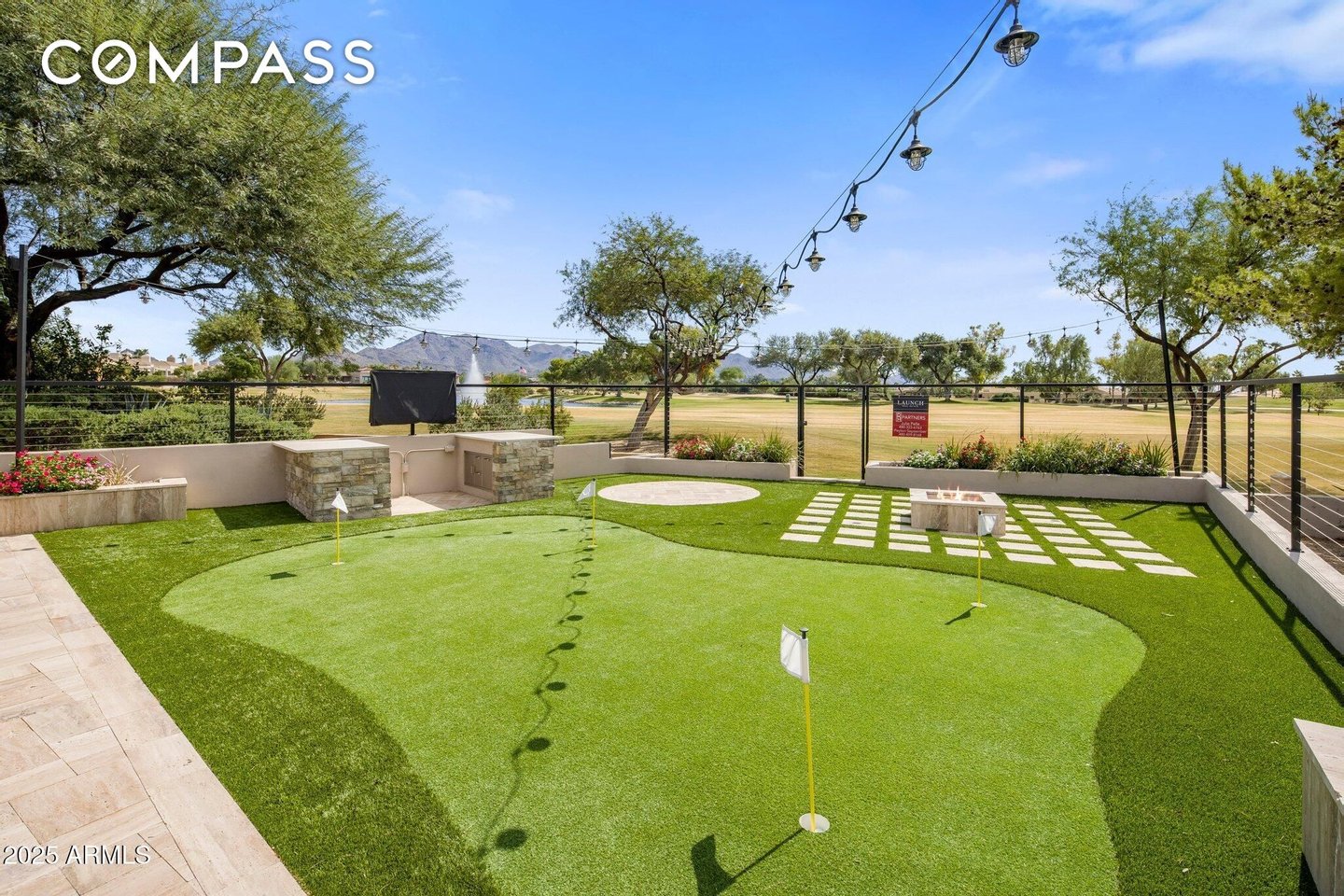 Exquisitely remodeled golf course residence in guard-gated Pinnacle Peak Country Club Estates of North Scottsdale, ideally positioned on a quiet cul-de-sac lot backing to the 8th fairway with sweeping golf course and McDowell Mountain views. This thoughtfully updated split-floorplan home offers 3 bedrooms, 3.5 bathrooms and an expansive paver motor court leading to an oversized climate-controlled 2.5-car garage with air conditioning and heat - perfect for car enthusiasts, collectors or hobby space. A lush private courtyard welcomes you with mature landscaping and a charming stone fireplace, creating an inviting entry and additional outdoor living space. Inside, rich hardwood flooring flows throughout the open living areas, where a spacious great room and custom built-in bar provide the perfect setting for entertaining. The gourmet chef's kitchen is beautifully appointed with a Sub-Zero refrigerator, DCS 6-burner gas range with double ovens, stainless microwave, KitchenAid dishwasher, quartz countertops, butler's pantry, dedicated coffee station and pass-through window for effortless indoor-outdoor entertaining. A designer powder room with custom wall coverings and elevated fixtures highlights the home's refined finishes. The desirable split layout offers a private primary retreat along with two separate guest suites, ideal for visitors or multigenerational living. Step outside to a resort-style backyard overlooking the pristine fairway and dramatic desert mountain backdrop, complete with a heated pool, putting green, fire pit and multiple lounge and dining areas designed for year-round Arizona living. A private gate provides direct access to the golf cart path--perfect for morning walks or sunset strolls along the private course. Located in one of North Scottsdale's most sought-after guard-gated golf communities, residents enjoy close proximity to world-class golf, Pinnacle Peak hiking trails, luxury dining including Mastro's and Lamp Pizzeria, Market Street shopping, and the premier lifestyle amenities of North Scottsdale.