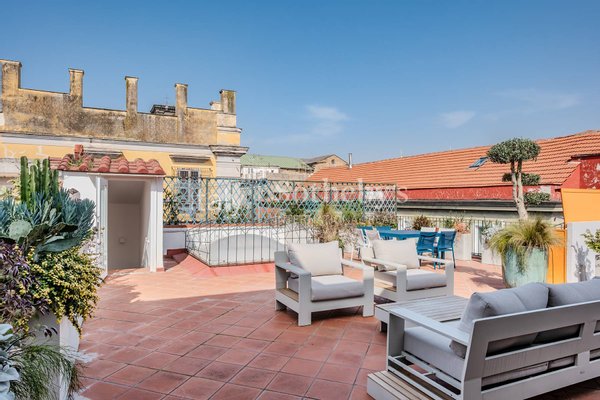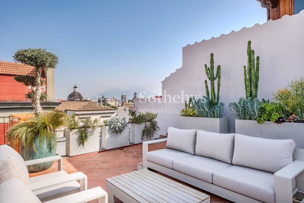 In the historic center of Naples, along one of its most iconic streets, there is a renovated, bright and fully furnished penthouse that combines the charm of tradition with contemporary comfort.