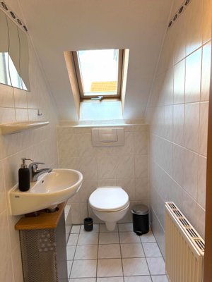 Natürlich gibt es ein Gäste-WC und für kalte Wintermonate auch eine Badewanne neben der Dusche.
