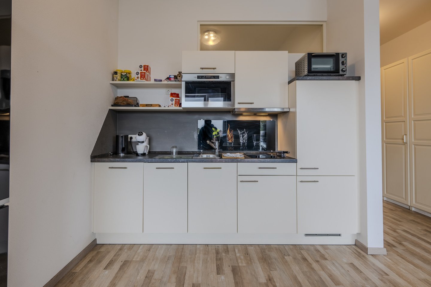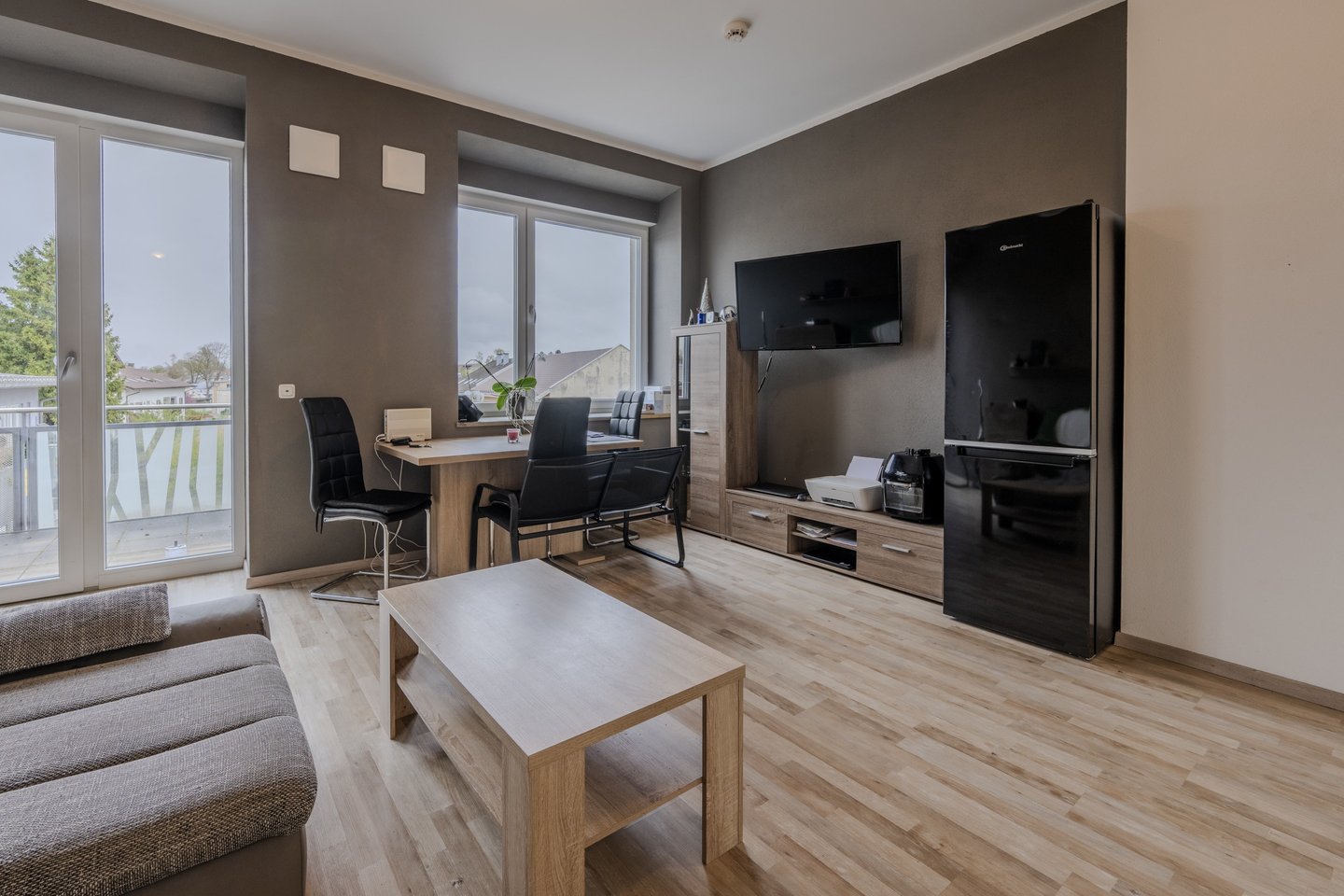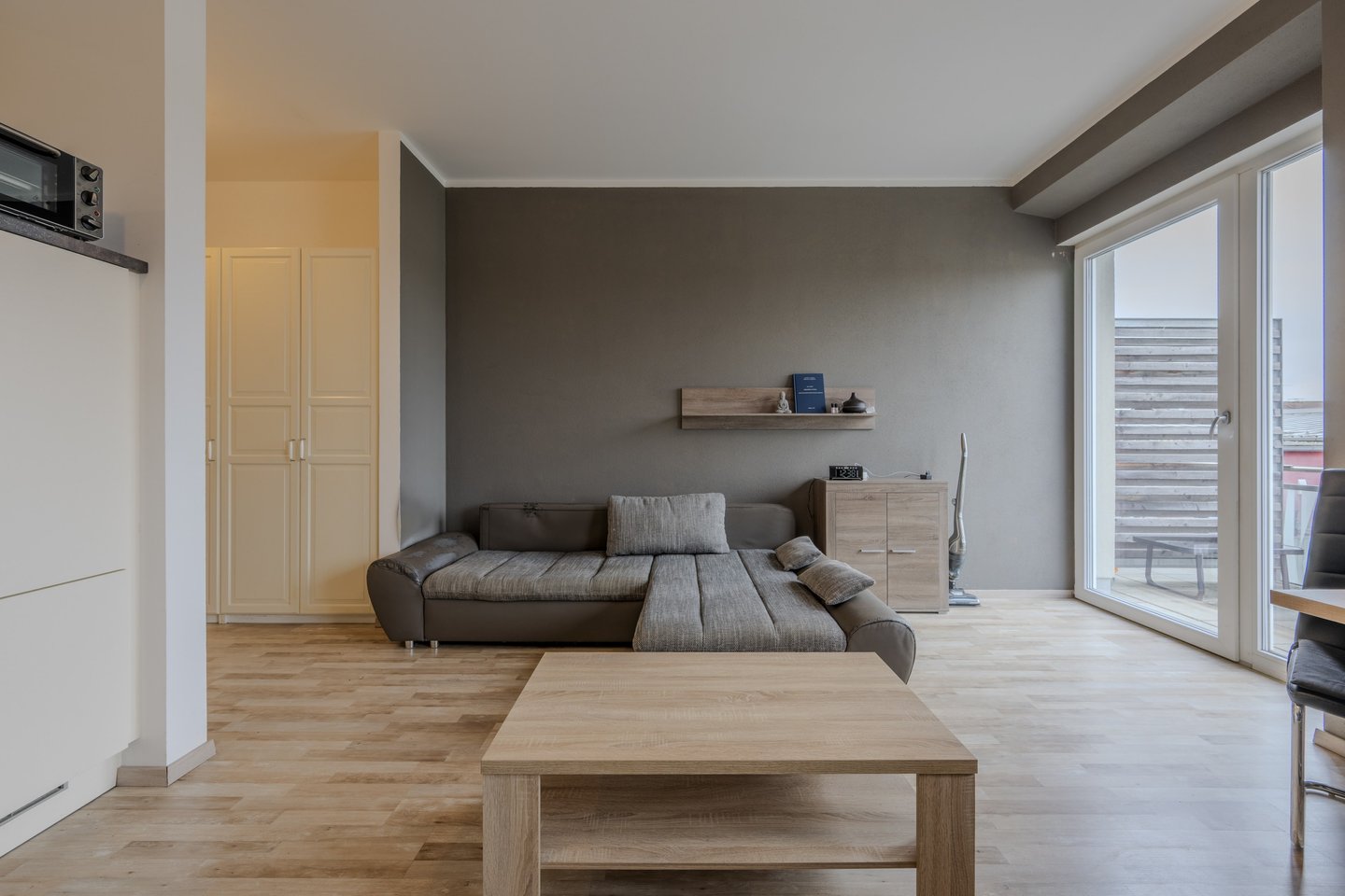 Der Wohnbereich ist klar strukturiert und verbindet Wohnen und Kochen auf angenehme Weise. Die Küche ist funktional integriert und erlaubt eine alltagstaugliche Nutzung ohne Flächenverlust. Der Wohnraum mit seinen großzügigen, teils bodentiefen Fenstern schafft lichtdurchflutete helle Räume - durch ein Oberlicht strahlt sogar Tageslicht in das innenliegende Badezimmer. Ein starkes Argument für langfristige Vermietbarkeit und ein Plus an Wohnqualität.