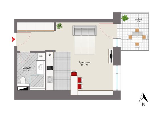 - ca. 5 m² großer Balkon in Ostausrichtung