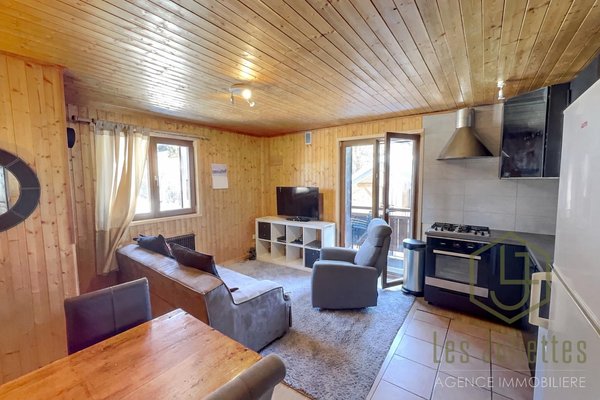 In einer ruhigen Gegend von Les Gets gelegen, in unmittelbarer Nähe einer Shuttle-Haltestelle, die eine einfache Anbindung ins Dorfzentrum und zu den Skipisten ermöglicht, bietet dieses Apartment einen idealen Rahmen für Bergliebhaber, Sommer wie