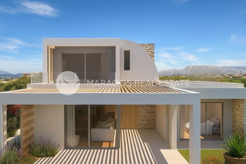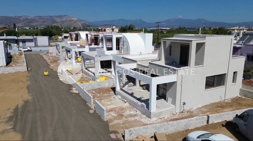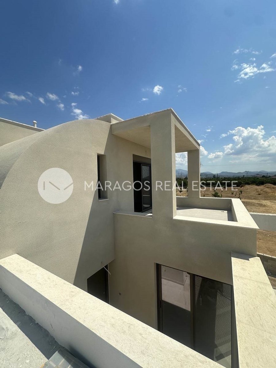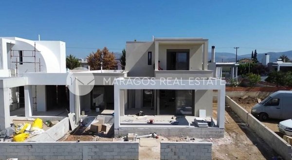 In Argolis, im sich entwickelnden Gebiet von Dalamanara, steht ein hochwertiges Einfamilienhaus mit einer Fläche von 100 m² auf einem Grundstück von etwa 280 m² zum Verkauf. Es wurde mit Schwerpunkt auf Funktionalität, Bauqualität und Komfort entworfen und ist damit eine ideale Wahl für ständige oder Feriennutzung sowie für Investitionen mit Perspektiven zur touristischen Entwicklung. Das Haus erstreckt sich über zwei Ebenen, die über eine Innentreppe verbunden sind. Das Erdgeschoss umfasst ein geräumiges Wohnzimmer - Küche, zwei helle Schlafzimmer und ein Badezimmer, während sich im ersten Stock ein luxuriöses Master-Schlafzimmer mit Privatheit, Aussicht und eigenem WC befindet. Die Innenräume sind durchgehend, straßenseitig und äußerst hell, mit hochwertigen Materialien, wie Fliesenboden, Aluminiumfenstern mit Doppelverglasung und Insektenschutz. Das Haus bietet energetische Autonomie mit einem Fan Coil-Heizungssystem und einem solarbetriebenen Warmwasserbereiter, und verfügt über eine Vorbereitung zur Installation einer Alarmanlage und die Möglichkeit, eine "AI Home Solution" für die intelligente Steuerung der Hausfunktionen zu installieren. Ein wesentlicher Vorteil ist die 40 m² große Terrasse mit ungehindertem Blick sowie der gestaltete Außenbereich, der einen privaten Garten mit Parkplätzen umfasst, während dem Käufer die Möglichkeit zur Konstruktion eines Pools, eines Jacuzzis und eines BBQ angeboten wird. Die Region vereint die Ruhe des Landlebens mit der Nähe zu städtischen Infrastrukturen und touristischen Sehenswürdigkeiten und ist somit eine ideale Wahl sowohl für Familien als auch für Investoren. Dieses Einfamilienhaus ist eines von drei (3) unabhängigen Wohnhäusern, die zum Verkauf in derselben Gegend angeboten werden, jedes mit einem eigenen Grundstück und vollständiger Autonomie.