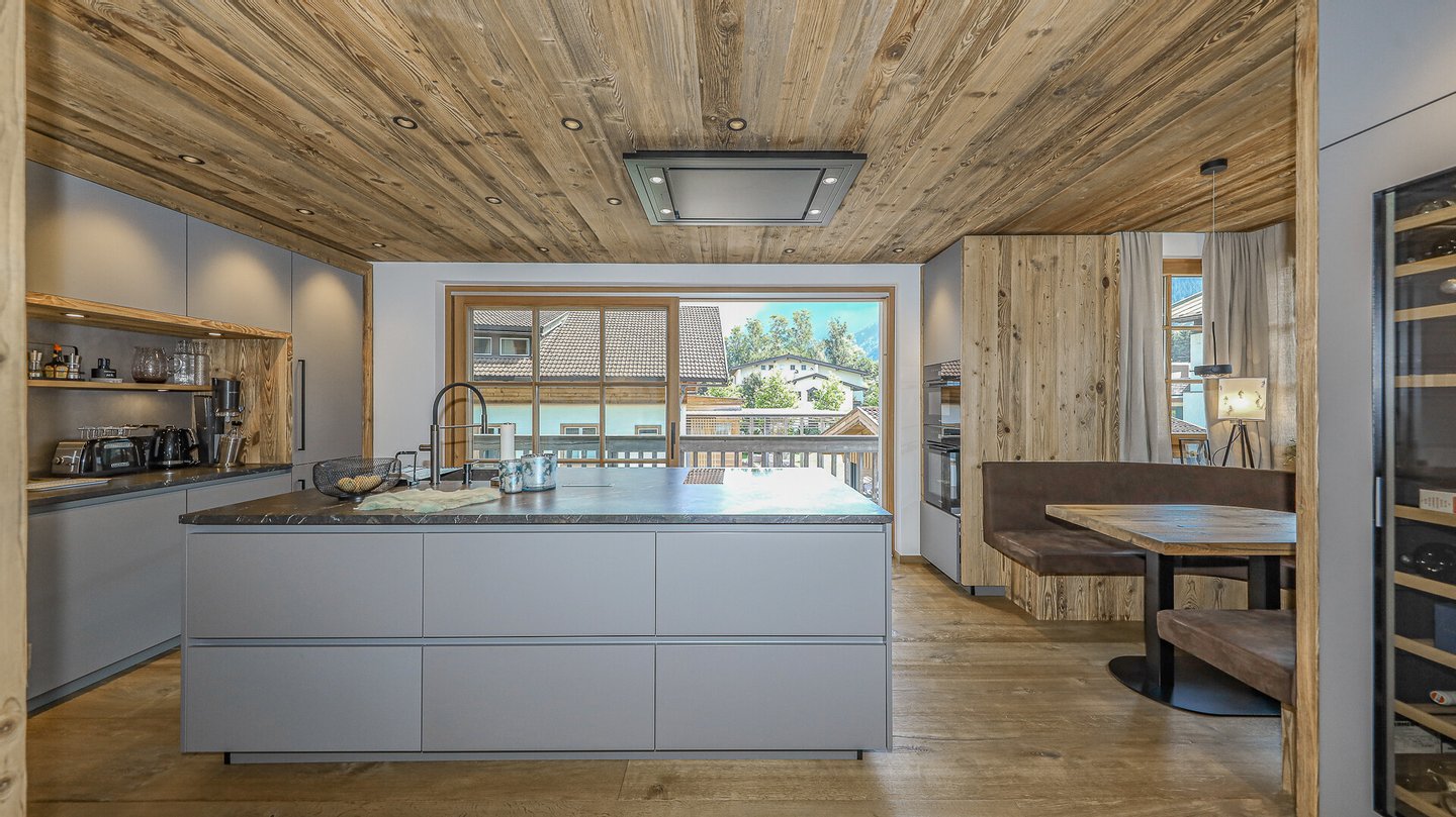 Neben dem Wohnsalon ist die ca. 20 m2 große Designerküche gelegen, welche über einen Ess-Erker verfügt.