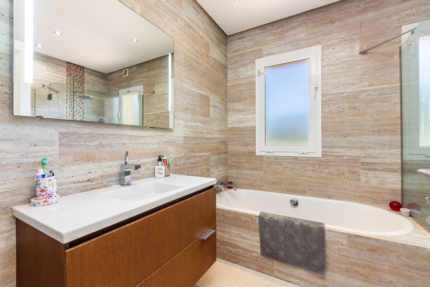 Für hohen Wohnkomfort sorgen eine Ölzentralheizung, Fußbodenheizung, Klimaanlage sowie ein Kamin, der in den kühleren Monaten eine behagliche Atmosphäre schafft. Komplettiert wird das Angebot durch eine Garage.