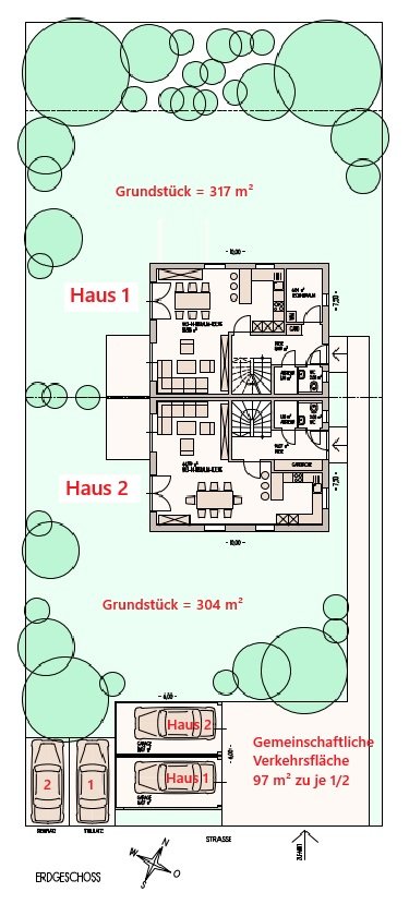 Auf einem real geteilten Grundstück (ca. 317 m² zzgl. anteiliger Verkehrsfläche; gesamt ca. 366 m²) stehen ca. 145 m² Wohnfläche auf drei Etagen zur Verfügung. Insgesamt bietet das Haus 5 Zimmer, darunter 4 Schlafzimmer, ein Bad sowie ein Gäste-WC. Die offene Küche integriert sich in den großzügigen Wohn-/Essbereich und führt direkt auf die Sonnenterrasse und in den Garten. Highlight ist das flexibel nutzbare Studio im Dachgeschoss, ideal als Homeoffice, Gäste- oder Hobbybereich.