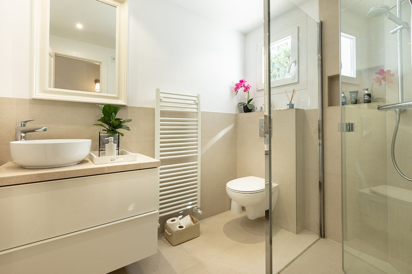 Die Immobilie wurde über die Jahre modernisiert und präsentiert sich in einem sehr gepflegten Zustand. Die Ausstattung umfasst Klimaanlage, Kamin, eine ölbeheizte Zentralheizung mit Radiatoren sowie Fußbodenheizung in den Badezimmern im Obergeschoss. Ergänzt wird der Wohnkomfort durch ein Wasserenthärtungs- und Filtersystem sowie einen Glasfaser-Internetanschluss.