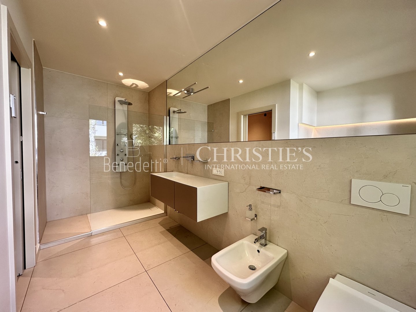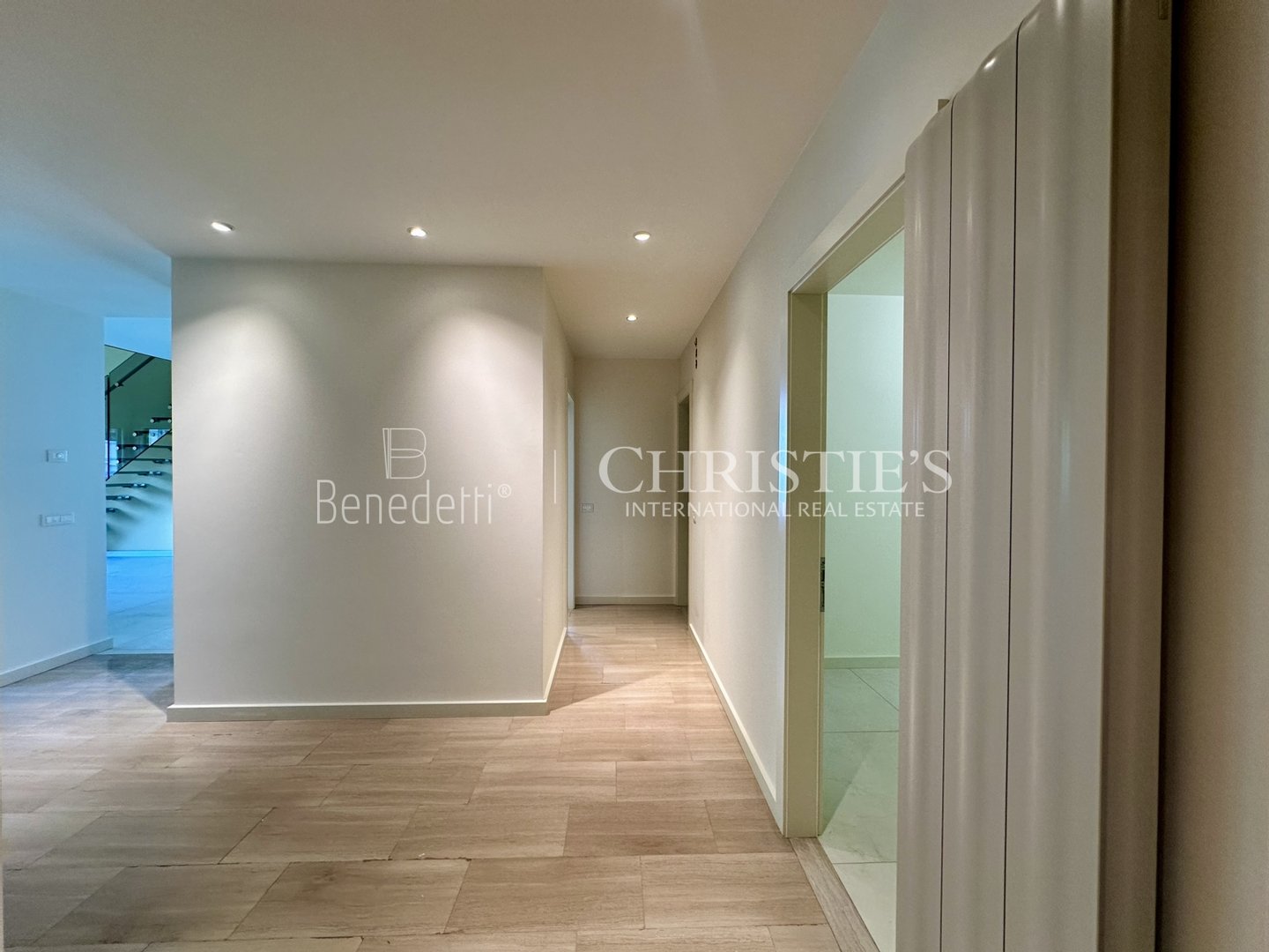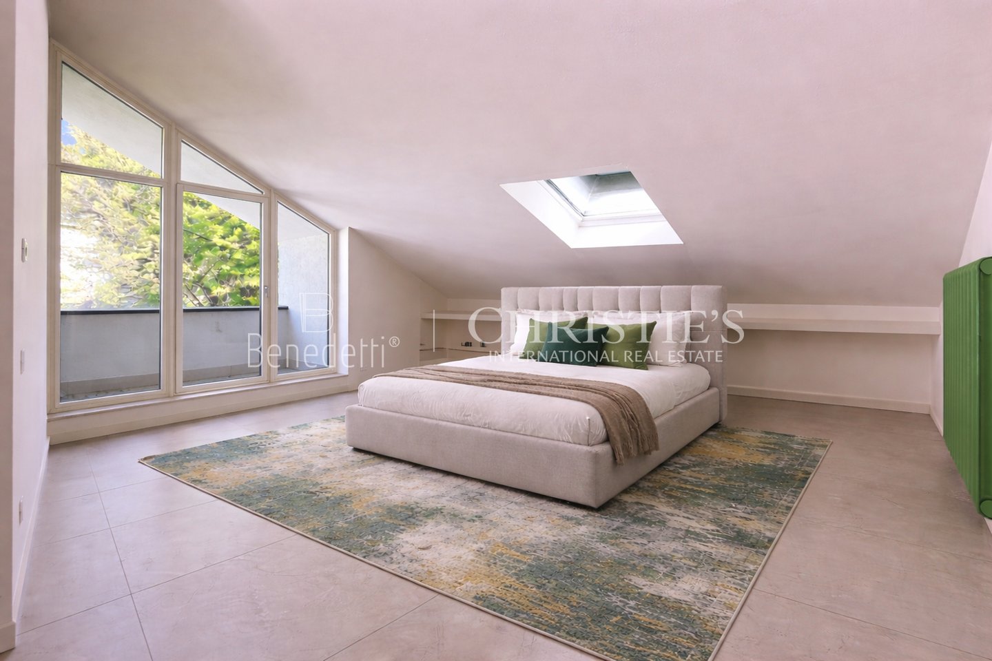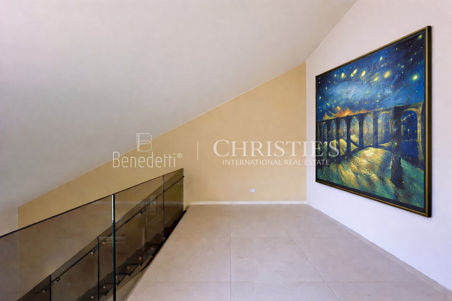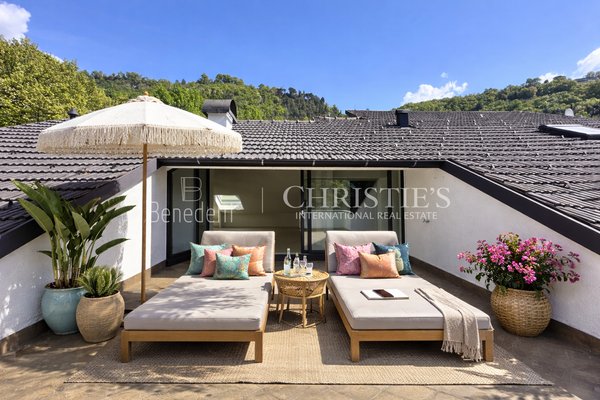Eine neue Glastreppe führt Sie in das obere Geschoss sowie letztem Stockwerk, wo ein heller Vorraum den Weg zu einem weiteren, flexibel nutzbaren Raum weist, der sich ideal als Schlafzimmer oder gemütliches Wohnzimmer eignet. Von hier aus gelangen Sie auf einen kleineren Balkon mit Nord-West-Ausrichtung sowie auf die großzügige Sonnenterrasse mit herrlichem Süd-/Ostblick – ein Highlight für alle, die das Leben im Freien lieben. Ein weiteres modernes Badezimmer mit Dachfenster sorgt für zusätzlichen Komfort.