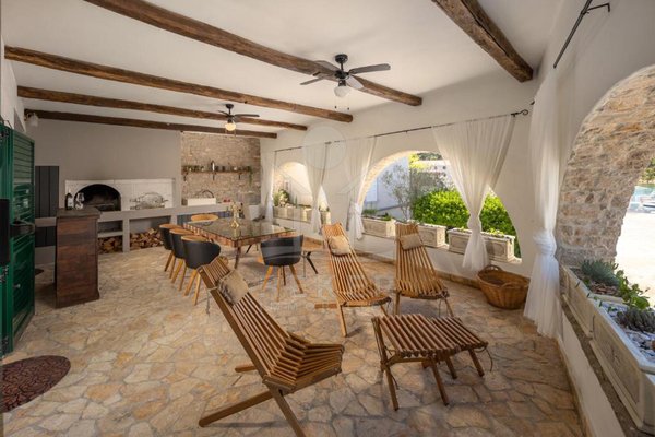 Diese freistehende Villa auf Dugi Otok bietet Ihnen eine besondere Lage direkt am Meer. Sie wohnen neben dem Yachthafen, in einer der gefragtesten Regionen des Zadar-Archipels. Restaurants, Cafés und ein Geschäft erreichen Sie bequem zu Fuß. Der