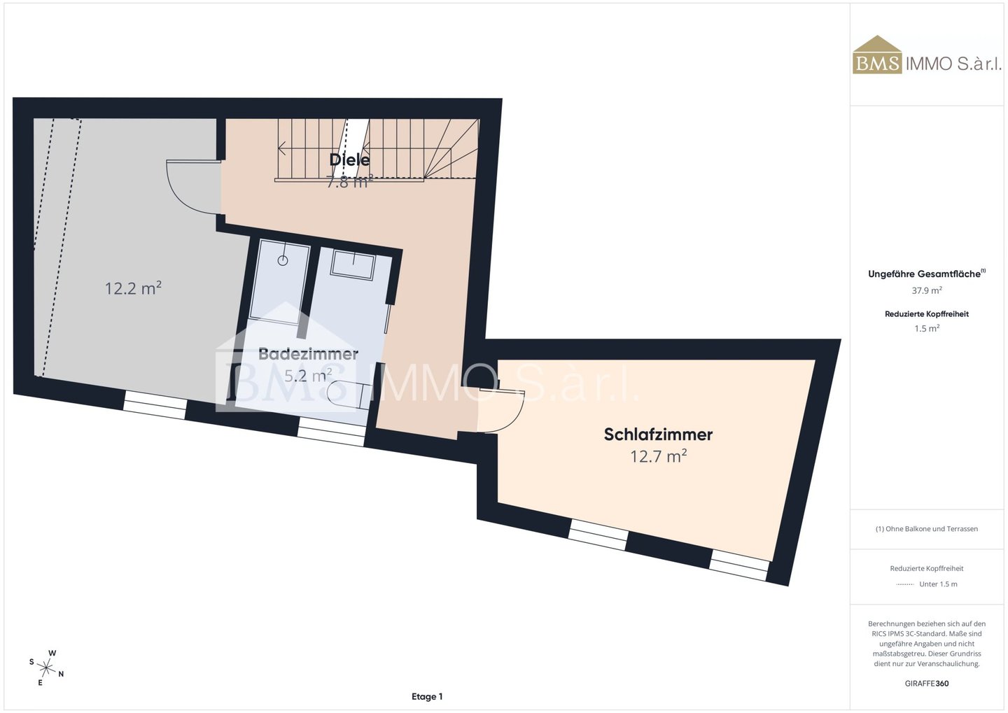 Die Immobilie befindet sich auf einen überschaubaren Grundstück von 72 qm in einer kleinen, etwas steil ansteigenenden Seitenstraße. Von hier erreichen Sie das Ortszentrum und die Grenzbrück zu Luxembourg fußläufig in nur wenigen Gehminuten. Das Haus verfügt über keinen Garten bzw. Grünfläche.