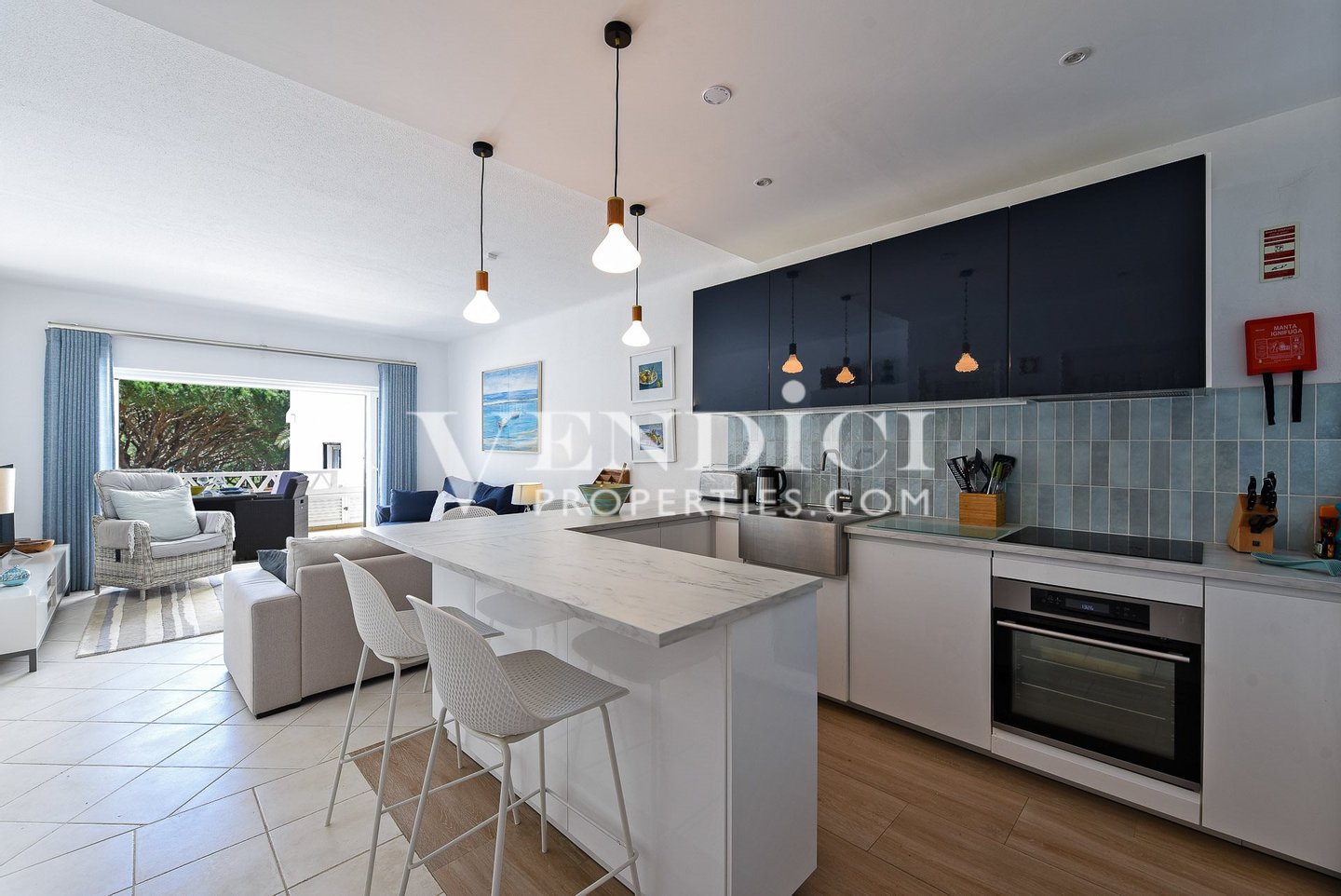Die zeitgemäße Küche wurde komplett aufgerüstet, mit integrierten Geräten und einer stilvollen Frühstücksbar – perfekt für zwanglose Mahlzeiten und Unterhaltung. Der offene Grundriss verbindet sich natürlich mit dem Wohnzimmer und verstärkt das Raumgefühl und die Geselligkeit.