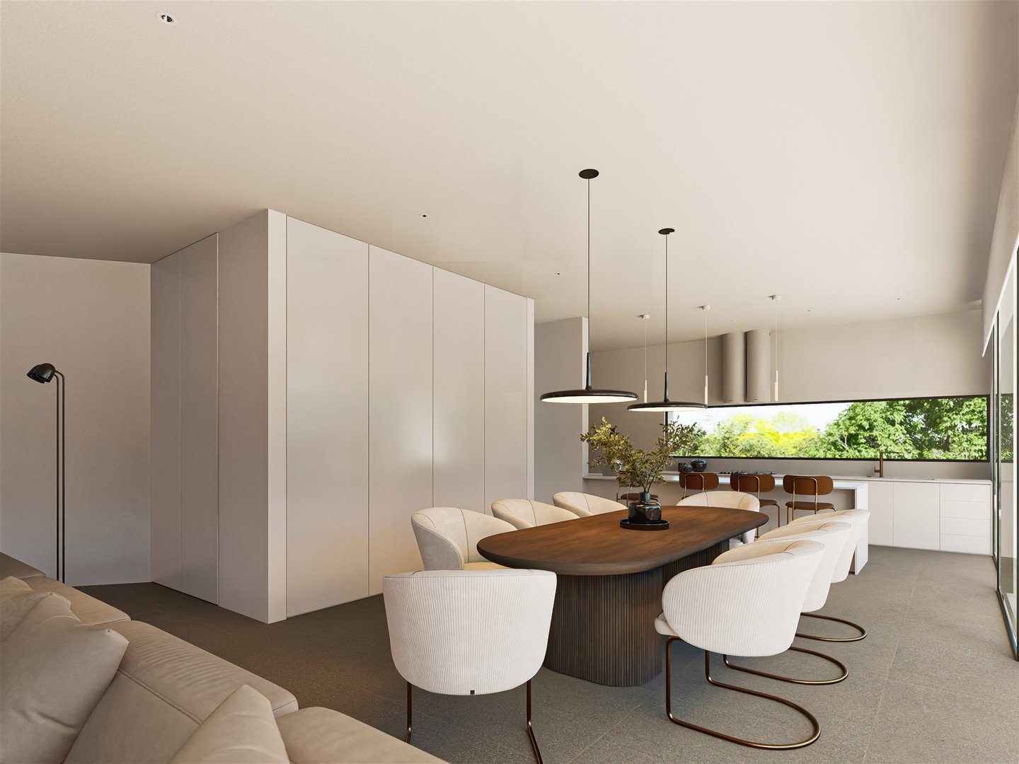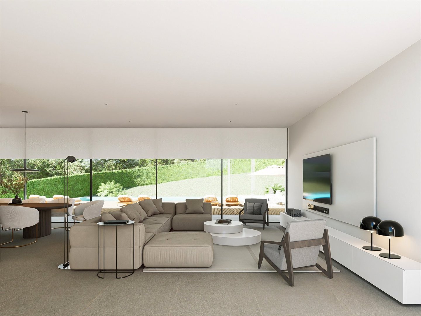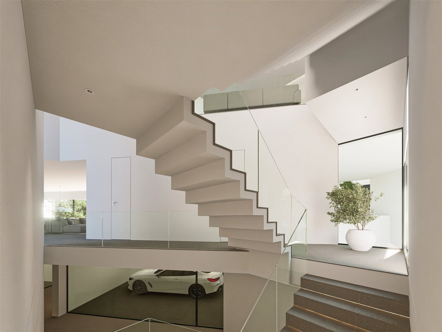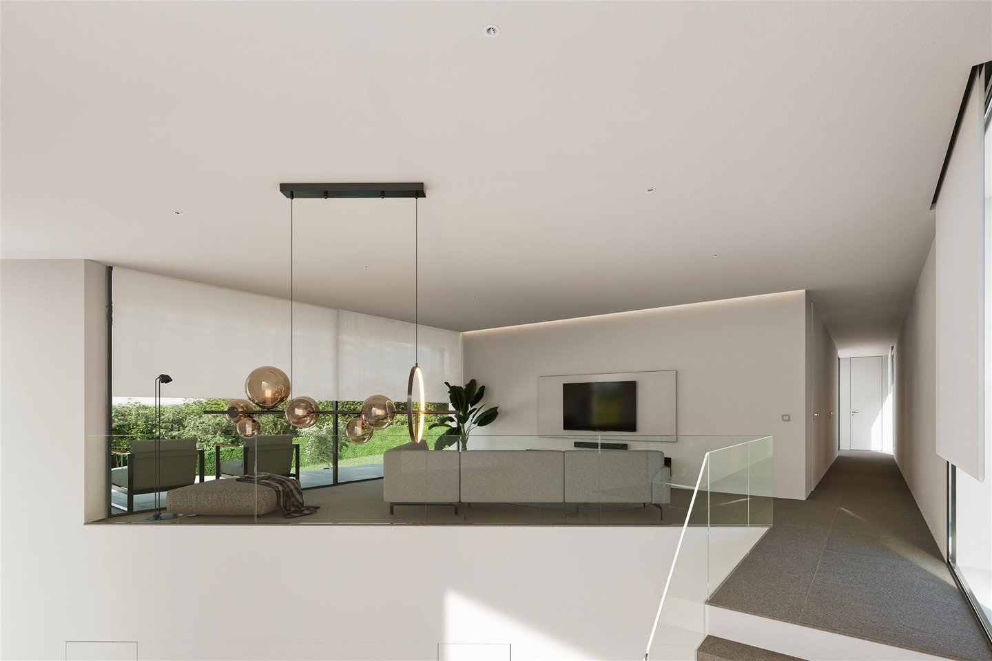 Großzügige Wohnbereiche: Das Erdgeschoss verfügt über ein offenes Wohnzimmer mit nahtlosem Übergang zwischen den Bereichen, konzipiert für Entspannung und Unterhaltung.