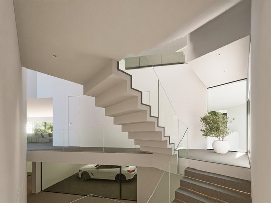 Geplant für Fertigstellung im Jahr 2026, wird das Design dieser hochmodernen Villa Erwartungen übertreffen, indem es cutting-edge Innovation mit zeitloser Eleganz verbindet. Das Gebäude bietet insgesamt 707 qm Nutzfläche, 361 qm Wohnfläche über zwei Ebenen, ohne das expansive Untergeschoss. Jeder Zentimeter wurde sorgfältig nach höchsten Standards gestaltet und macht dies zu einem wahren Meisterwerk modernen Wohnens.