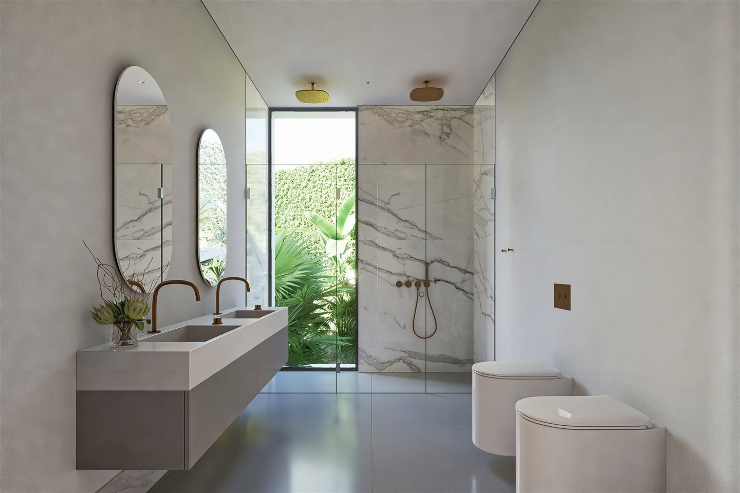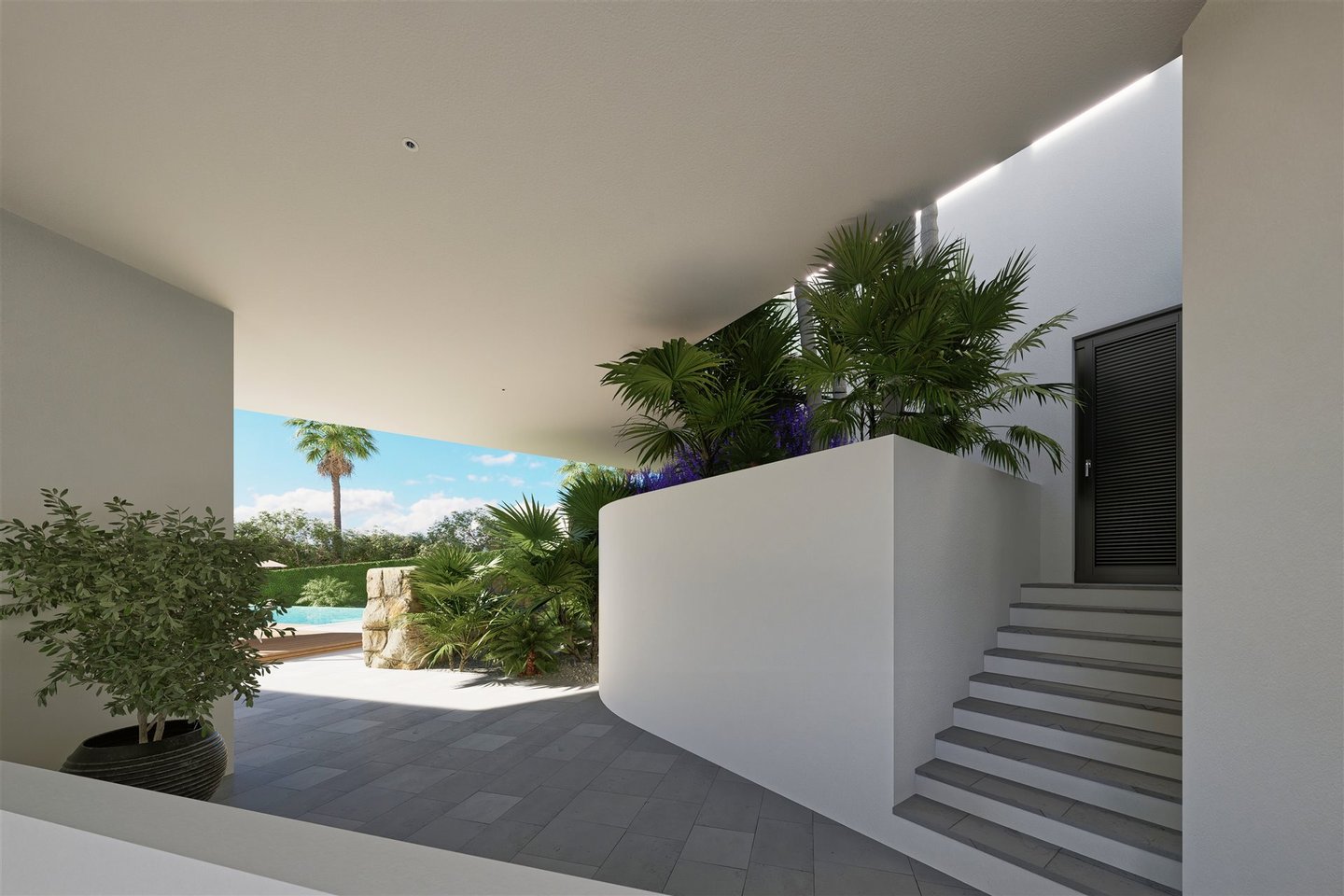 Vor die Tür treten Sie in Ihre private Zuflucht, in der eine Vielzahl von Annehmlichkeiten auf Sie wartet. Die Villa liegt eingebettet in perfekt gestaltete Gärten auf einem 2.409 qm großen Grundstück. Außenbereiche umfassen: