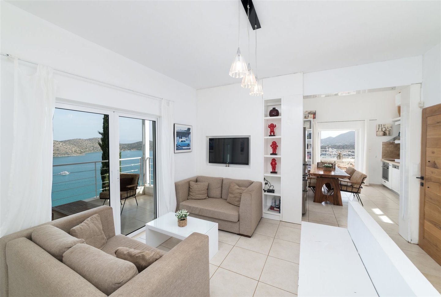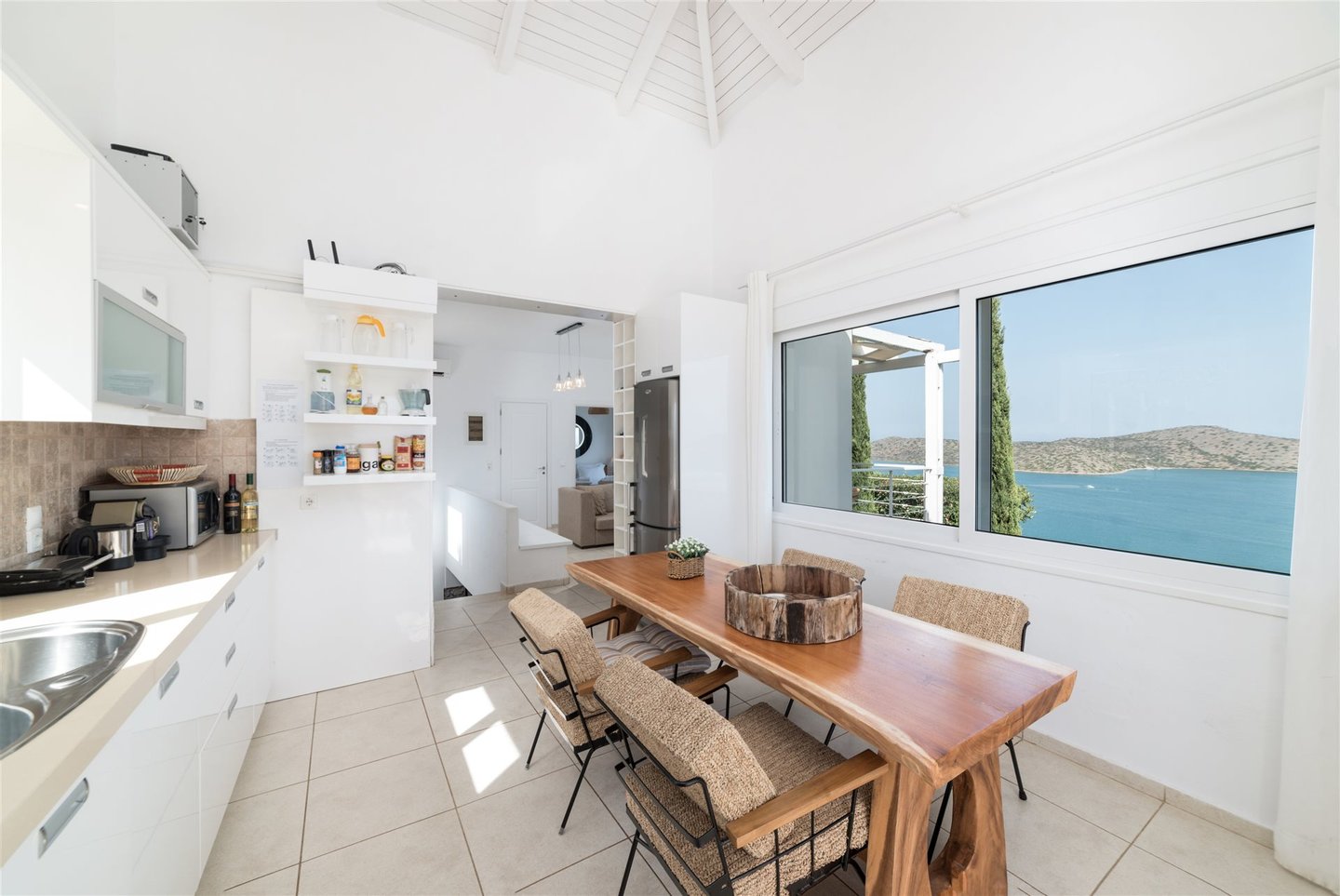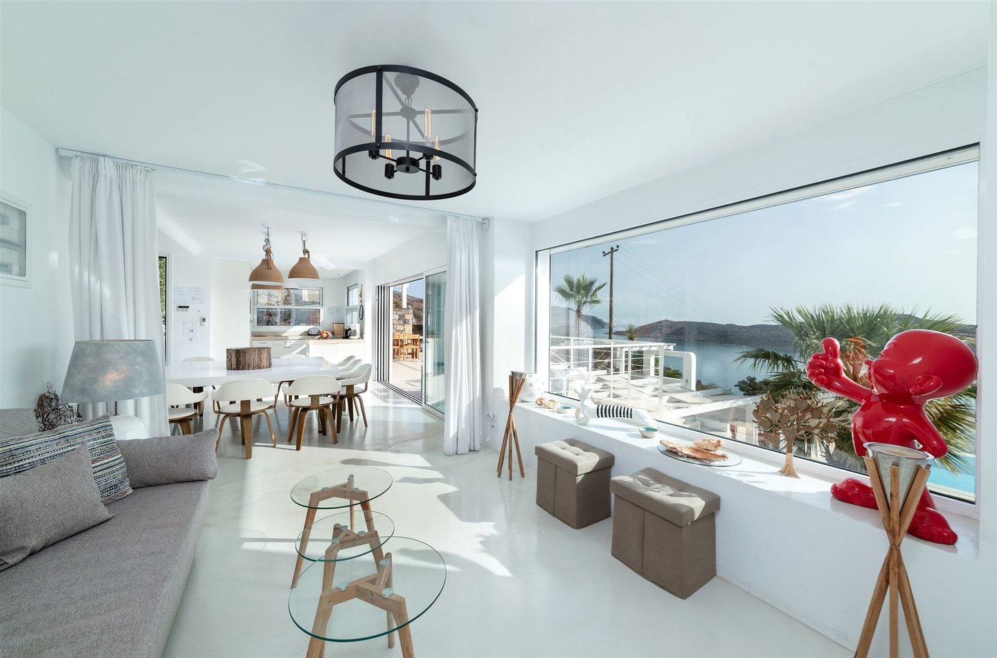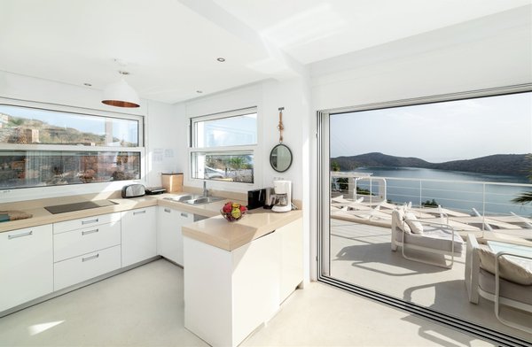 Der Blick auf das türkisblaue Meer ist sowohl von den Innen- als auch von den Außenbereichen der Häuser bezaubernd.