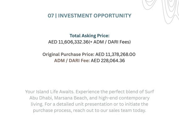 Hudayriyat Insel ist kein Projekt. Es ist die Entscheidung Abu Dhabis, das Premium-Wohnziel der Hauptstadt von Grund auf neu zu schaffen – auf eigenem Inselstück mit Strand, Marina und dem größten Surfzentrum der Region. Diese Villa wurde von einem privaten Investor off-plan gekauft. Der Verkäufer hat bereits 50% des Gesamtpreises bezahlt – 6.500.000 AED. Sie übernehmen die verbleibenden 50% bei Übergabe Q1 2027. Kein Bau-Risiko. Weniger Kapitalbindung als bei einem direkten Neubau vom Entwickler. Für 13.000.000 AED auf 782 m² bebautem Flächenmaß bei 1.107 m² privatem Land, mit privatem Pool und bestätigter Übergabe im Q1 2027, ist dies ein strukturierter Einstieg in eine der best-positionierten Gemeinden Abu Dhabis.