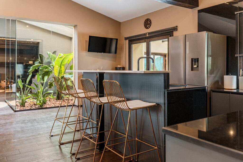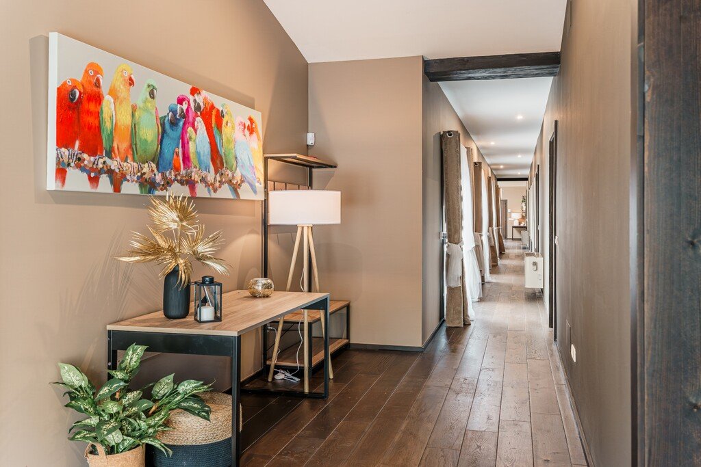 Das einstöckige Haus bietet vier Doppelzimmer, jeweils mit eigenem Bad und Einbauschränken. Das Hauptschlafzimmer verfügt über einen begehbaren Kleiderschrank, einen Abstellraum, eine separate Dusche und eine freistehende Luxusbadewanne. Zudem gibt es ein Büro und einen Hauswirtschaftsraum. Das vierte Schlafzimmer eignet sich ideal für Gäste und hat ein eigenes Bad sowie eine private Terrasse mit Blick auf die gepflegten Gärten.