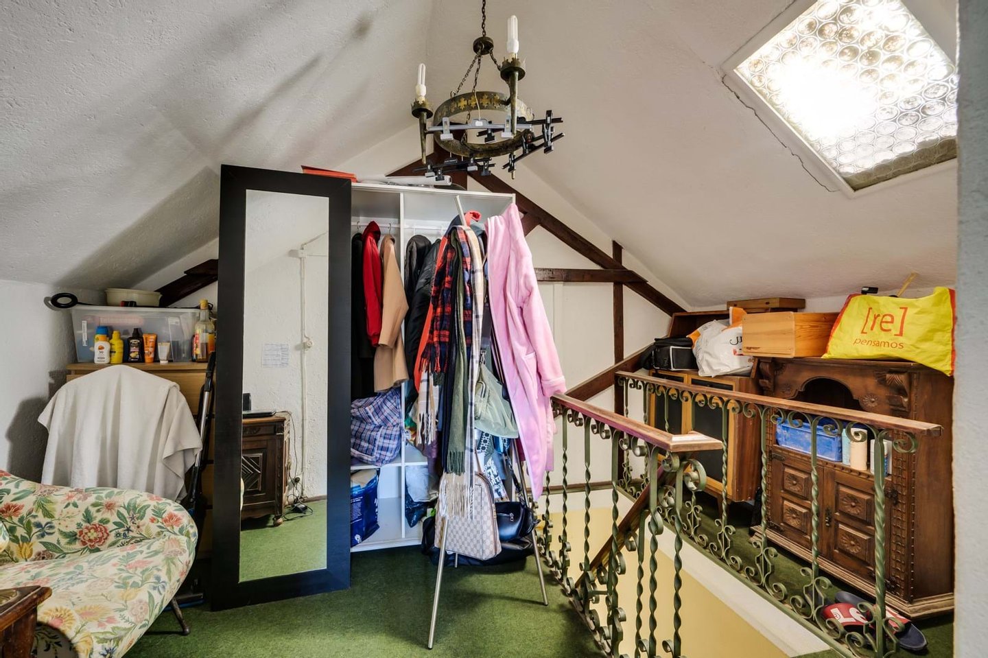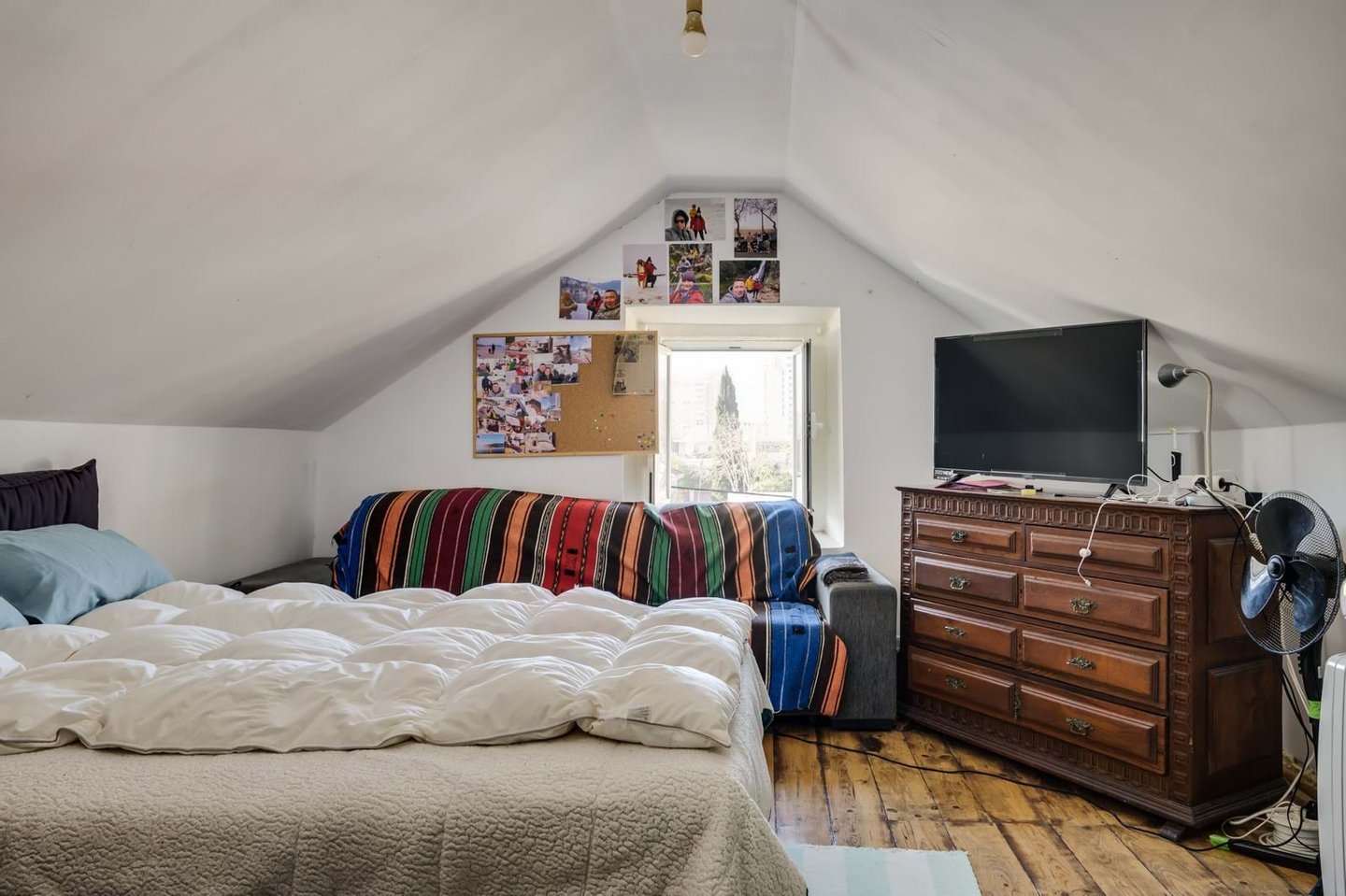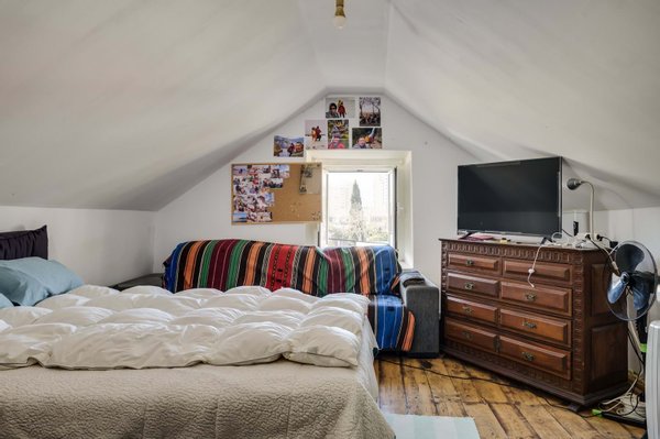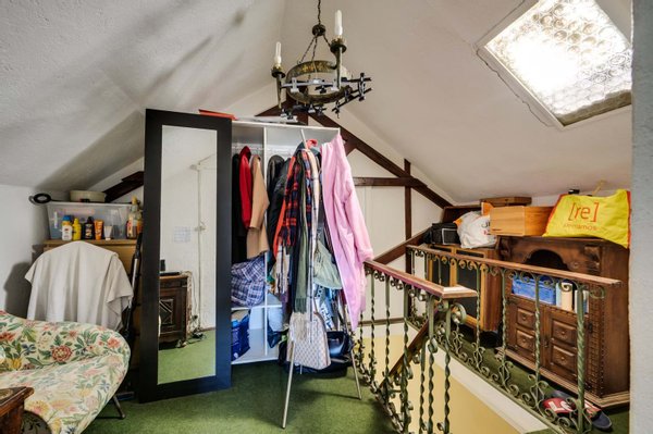 The attic has a ceiling height of around 2.5 m in the center, which allows it to be used.