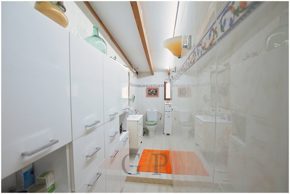 Im Obergeschoss erwarten Sie zwei gut geschnittene Schlafzimmer, die Rückzugsorte voller Geborgenheit bieten. Eines davon verfügt über eine eigene Toilette en suite sowie Zugang zu einer Terrasse. Von hier aus genießen Sie einen herrlichen Blick über die Dächer von Artà bis hin zur beeindruckenden Silhouette von Sant Salvador – ein Ausblick, der jeden Tag aufs Neue begeistert.