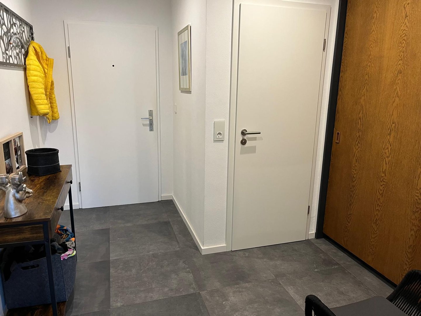 Ein elegantes Badezimmer mit moderner Ausstattung sowie ein separates Gäste-WC bieten zusätzlichen Komfort im Alltag. Der praktische Einbauschrank im Eingangsbereich schafft wertvollen Stauraum. Ein Aufzug bringt Sie bequem bis in die Etage, ein Kellerabteil ergänzt das attraktive Gesamtpaket.