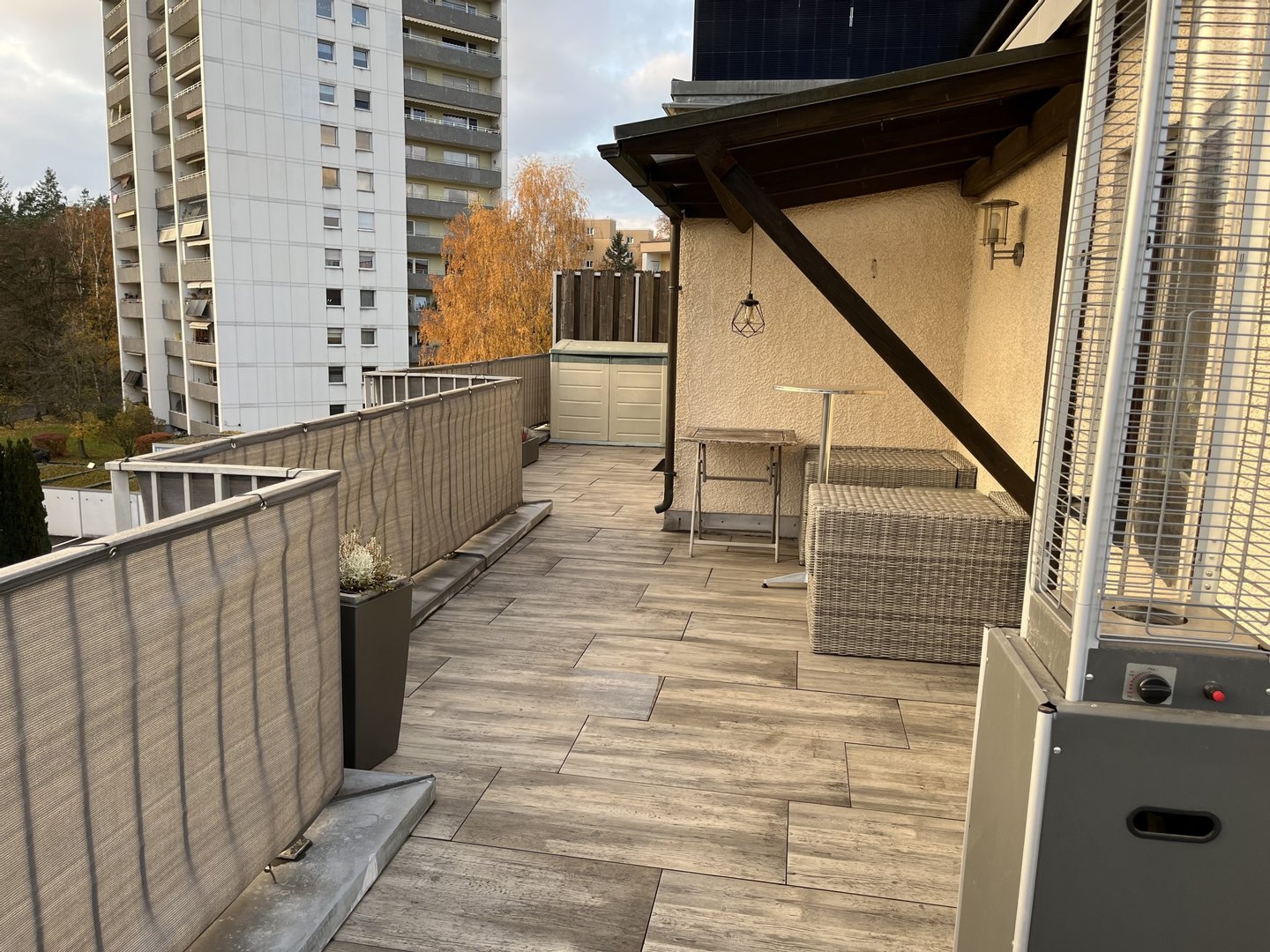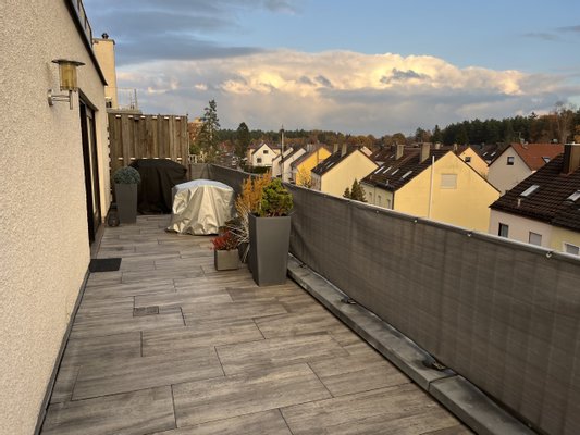 Die große Dachterrasse mit weitem Blick über die Umgebung lädt zu entspannten Abenden, geselligen Treffen mit Freunden oder ruhigen Sonnenstunden ein – ein echtes Highlight für Eigennutzer, die Wert auf Lebensqualität legen.