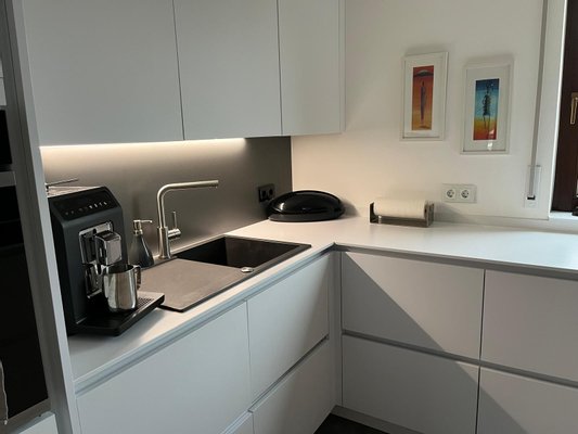 Herzstück der Wohnung ist der großzügige Wohn- und Essbereich mit direktem Zugang zur beeindruckenden Dachterrasse. Bodentiefe Fensterflächen sorgen für viel Tageslicht und schaffen eine helle, freundliche Atmosphäre. Die moderne Einbauküche ist bereits im Kaufpreis enthalten und fügt sich harmonisch in das hochwertige Gesamtbild ein.