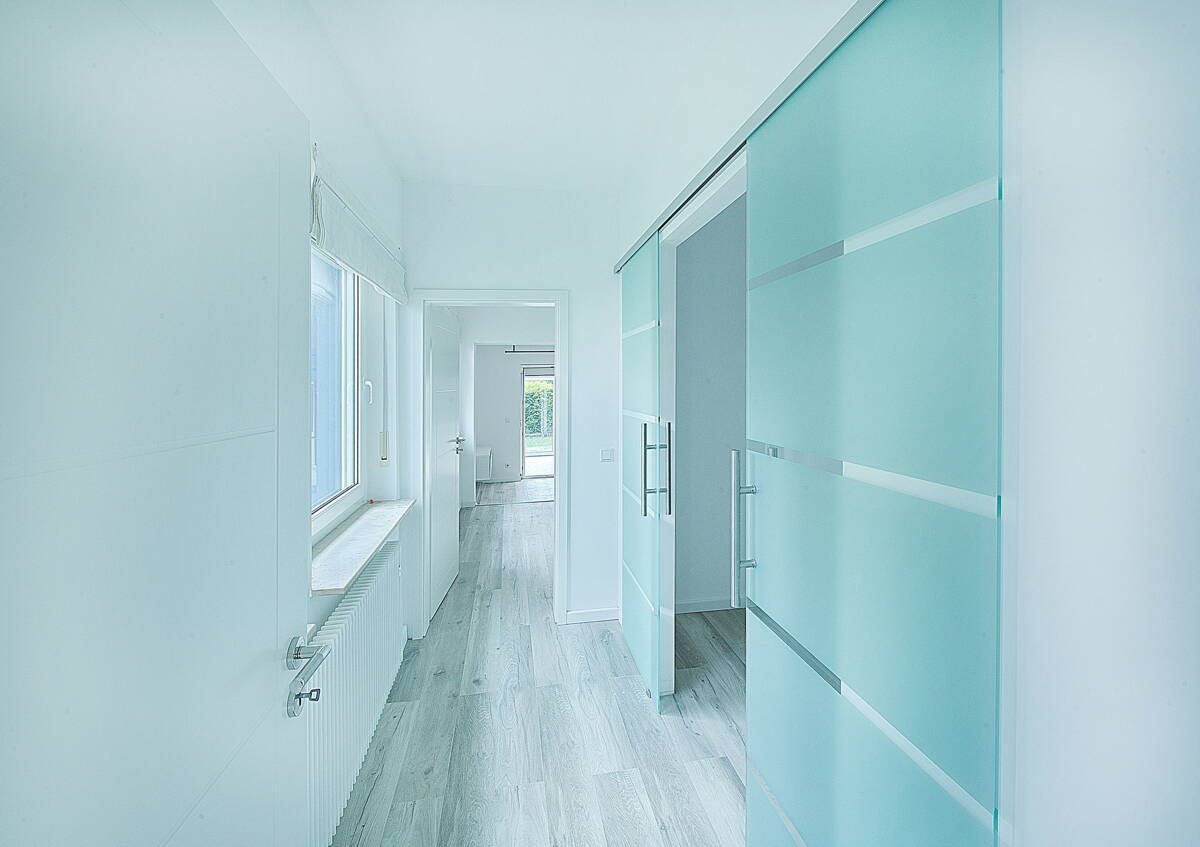 Das vordere, großzügige Einfamilienhaus erstreckt sich über drei Etagen und bietet mit einer Wohnfläche von ca. 160 m² viel Platz auch für eine größere Familie. Im Erdgeschoss befinden sich drei geräumige Zimmer, die flexibel als Schlaf-, Arbeits- oder Gästezimmer genutzt werden können, sowie ein modernes Duschbad.