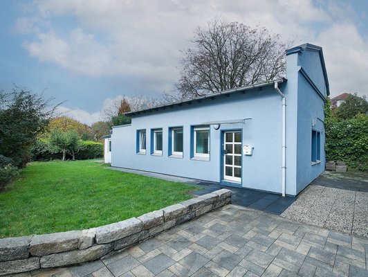 Hinter dem Haupthaus befindet sich ein separater, vollständig autarker Bungalow mit einer Wohnfläche von ca. 70 m². Er verfügt über drei Zimmer, eine Küche und ein Badezimmer. Dieses Nebengebäude wurde 2018 umfassend saniert und erhielt 2020 eine neue Etagenheizung. Damit eignet es sich hervorragend als Wohnraum für Eltern, erwachsene Kinder oder für eine berufliche Nutzung – etwa als Büro oder Praxis.