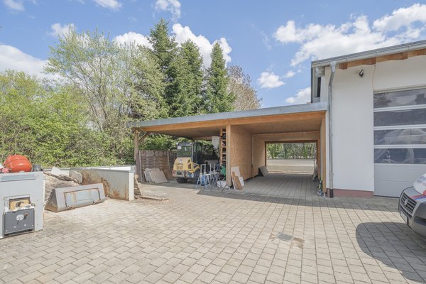 Auf dem ca. 2.470 m² großen Grundstück bietet das Objekt eine attraktive Kombination aus Wohnhaus, Halle und weitläufigem Außenbereich. Die Wohnfläche beträgt ca. 154,61 m² und verteilt sich auf 5,5 Zimmer – ideal für Familien oder alle, die viel Platz benötigen. Ergänzt wird das Angebot durch eine Halle mit Büroflächen von ca. 181,49 m², die sich hervorragend für Betrieb, Lager, Werkstatt, Handel oder administrative Zwecke eignet. Der Anbau der Halle erfolgte 2013. Ein Rolltor erleichtert die Nutzung im gewerblichen Alltag.