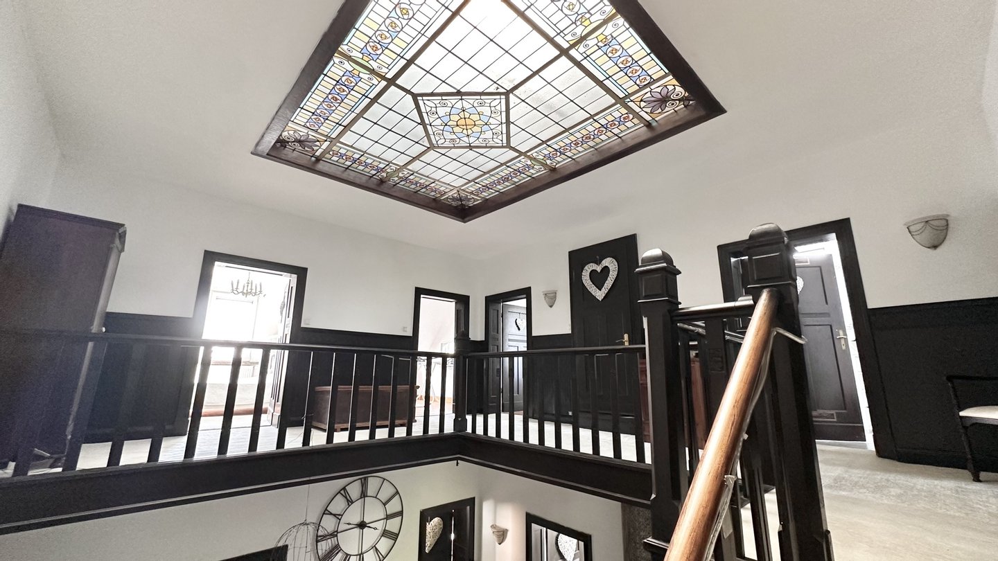 Die Lichtkuppel im Treppenhaus ist ein absolutes Highlight von Vielen und sorgt für eine einzigartige Atmosphäre und Lichtspiel, das Gleiche ergibt sich im Wintergarten, als auch im Wohnzimmer auf der 1.Etage und zaubert eine absolut einzigartige Raumatmosphäre.