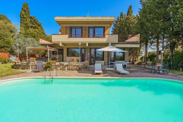 Die Villa ist umgeben von einem privaten eingezäunten Garten von etwa 2.000 qm und von etwa 5 ha Land, überwiegend mit Olivenhain. Die Immobilie ist Teil eines exklusiven Kondominiums von nur sechs Villen, mit Tor und gemeinsamer Allee, das Sicherheit bietet und gleichzeitig totale Unabhängigkeit bewahrt.