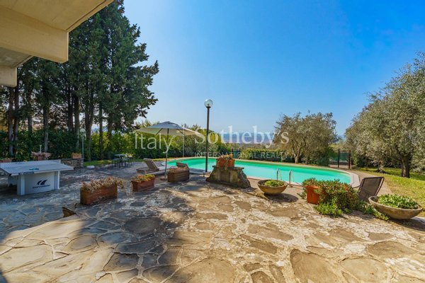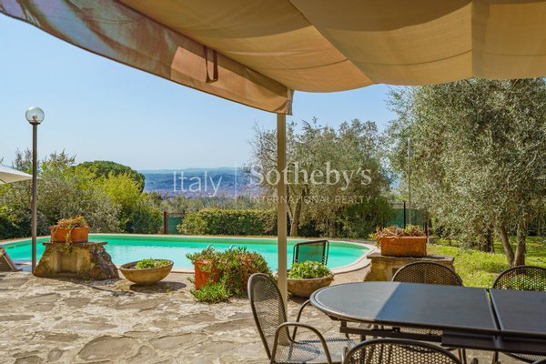 Auf einem panoramischen Hügel gelegen, nur wenige Minuten vom historischen Zentrum von Florenz entfernt, ist die Immobilie extrem hell, mit großen Glasflächen, die Innenräume, Garten und beheizten Pool verbinden und einen offenen Blick auf die Stadt und den Dom bieten.