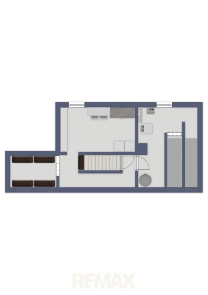 Im Erdgeschoss befindet sich weiters eine Küche, von der aus man in ein Badezimmer mit Dusche gelangt. Zusätzlich stehen auf dieser Ebene zwei Zimmer zur Verfügung, die individuell als Schlaf-, Kinder-, Arbeits- oder Gästezimmer genutzt werden können.