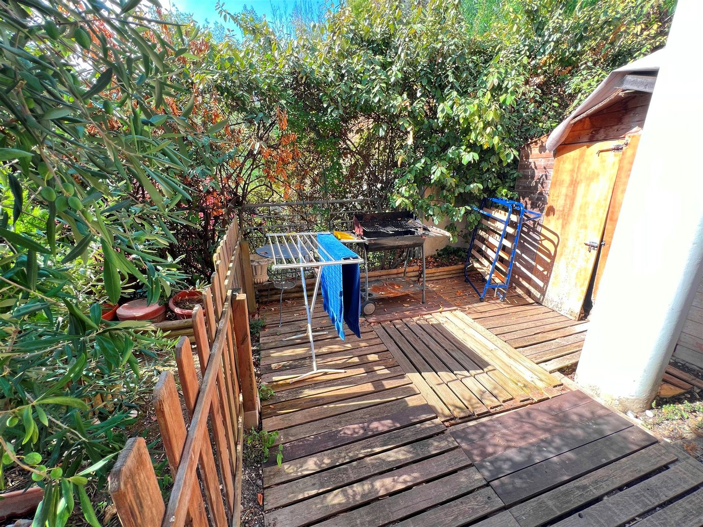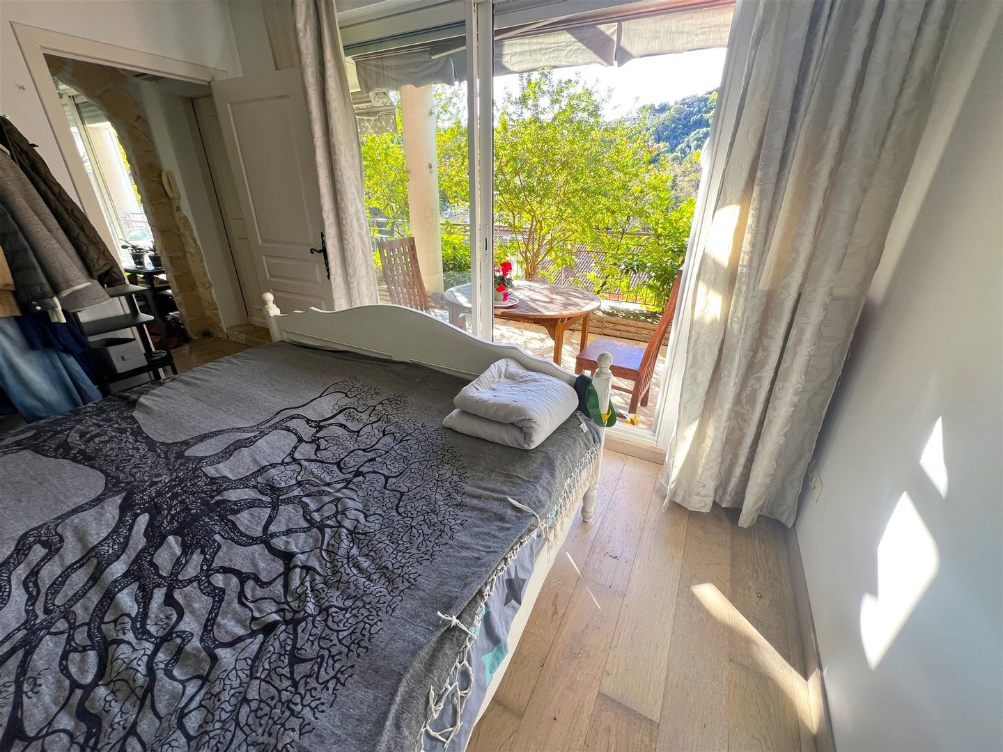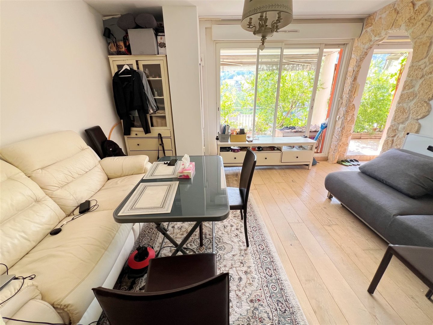 Diese schöne Wohnung bietet Ihnen ein großzügig gestaltbares Wohnzimmer, da es keine tragenden Wände gibt, separat ausgestattete Küche, die in eine schöne West- sonnige Terrasse führt, ein großes Schlafzimmer, das auf die Terrasse geht, ein zweites Schlafzimmer, das auf den Garten geht, sowie ein Badezimmer mit WC. Die Wohnung ist mit Klimaanlage ausgestattet. Die Wohnung verfügt außerdem über einen Parkplatz im Preis inbegriffen und eine große geschlossene Garage zu 44.000 €. Die Wohnung ist ideal, um im Sommer Ruhe zu genießen und die Aktivitäten in der Nähe zu nutzen. Für Wanderer die Promenade Le Corbusier, L’Olivier Millénaire, das mittelalterliche Dorf Menton. Für Wassersportler nur 15 Gehminuten entfernt: Fallschirmfliegen (Wingsuiting? vielleicht μ), Tauchen, Kajakfahrten.