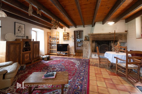 In der Nähe des Dorfzentrums und der Annehmlichkeiten bietet dieses ca. 195 m² große Haus auf einem Grundstück von 4049 m² all den charakteristischen Charme von Stein und Holz.