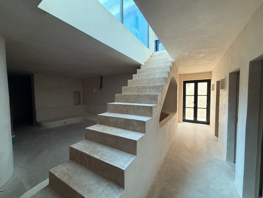 Der Rohbau ist fertiggestellt und wartet auf die endgültige Bauabnahmebescheinigung. Bestimmte Elemente, darunter die Gartengestaltung und ausgewählte Innenausstattungen, wurden bewusst offen gelassen, damit der zukünftige Eigentümer die letzten Details ganz nach seinem eigenen Stil und seinen Anforderungen gestalten kann.
