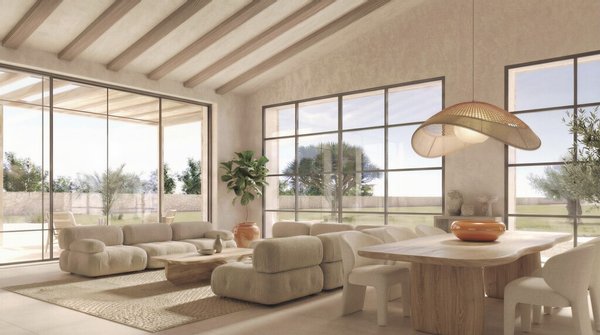 Große Fenster lassen natürliches Licht in die Innenräume strömen und verbinden die Innenbereiche nahtlos mit der Außenumgebung. Die Immobilie ist ganz auf den mediterranen Lebensstil ausgerichtet und bietet geräumige Terrassen sowie reichlich Platz zum Entspannen, Essen und Genießen der ruhigen Natur.