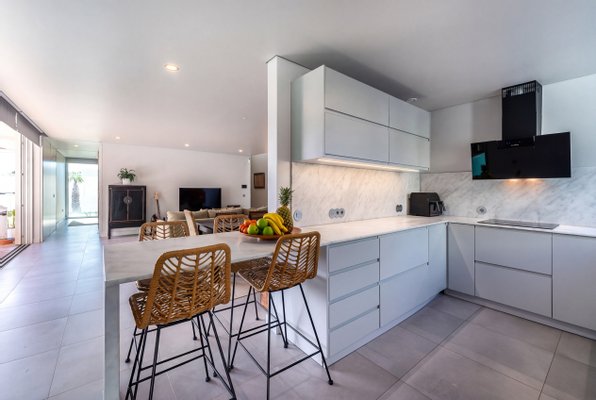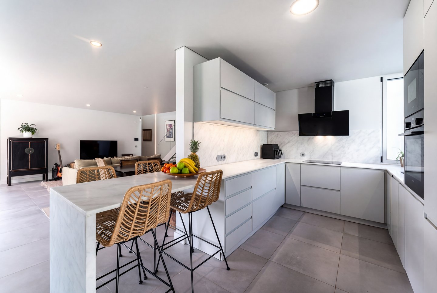 Inside, the villa features four spacious bedrooms ( 2 ensuite) and five bathrooms, all finished with contemporary materials that enhance both style and durability. The main living areas are bright and fluid, opening directly to the exterior garden, patio, and private swimming pool, creating a seamless indoor–outdoor lifestyle.