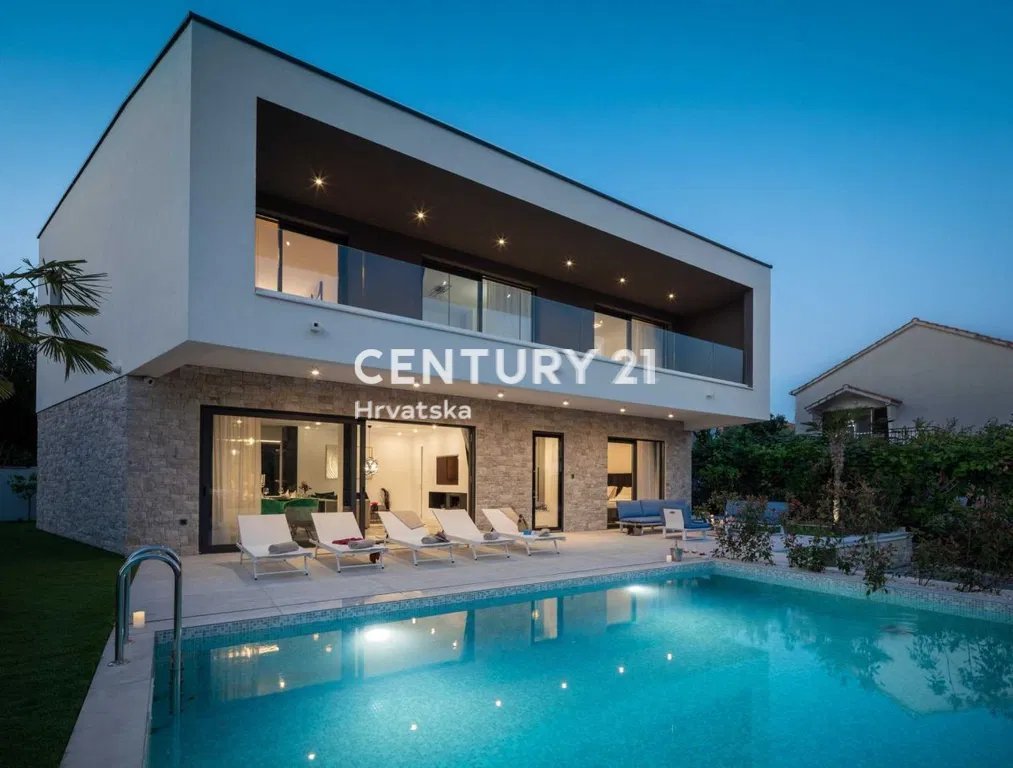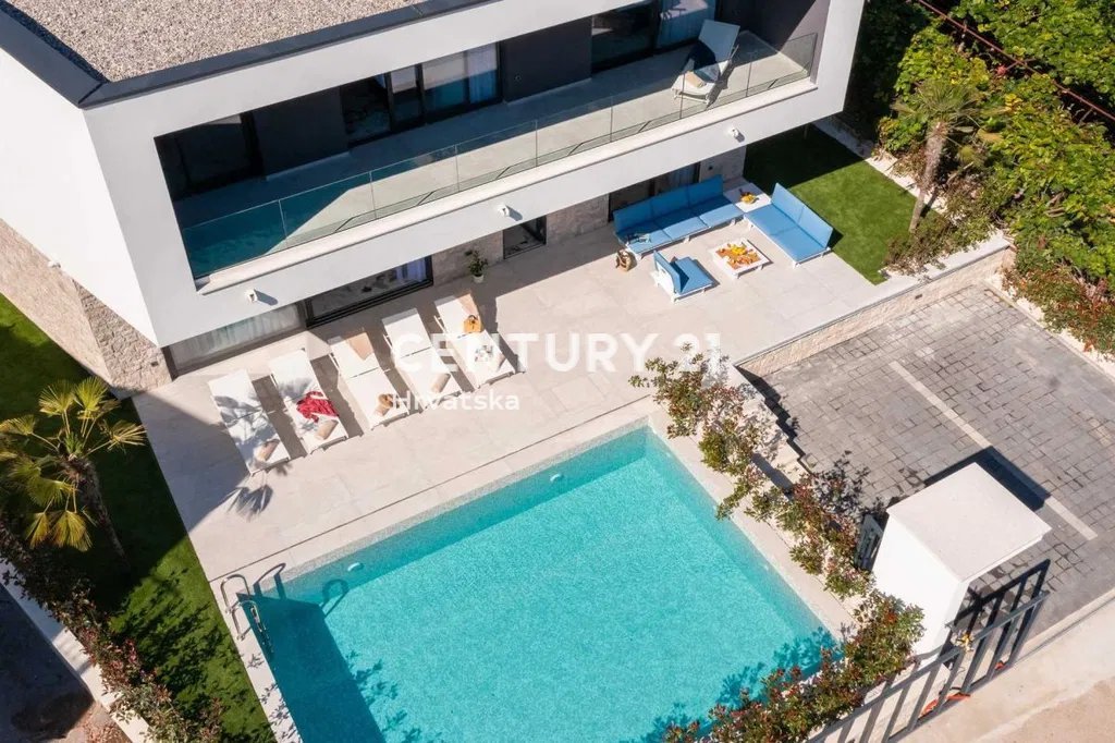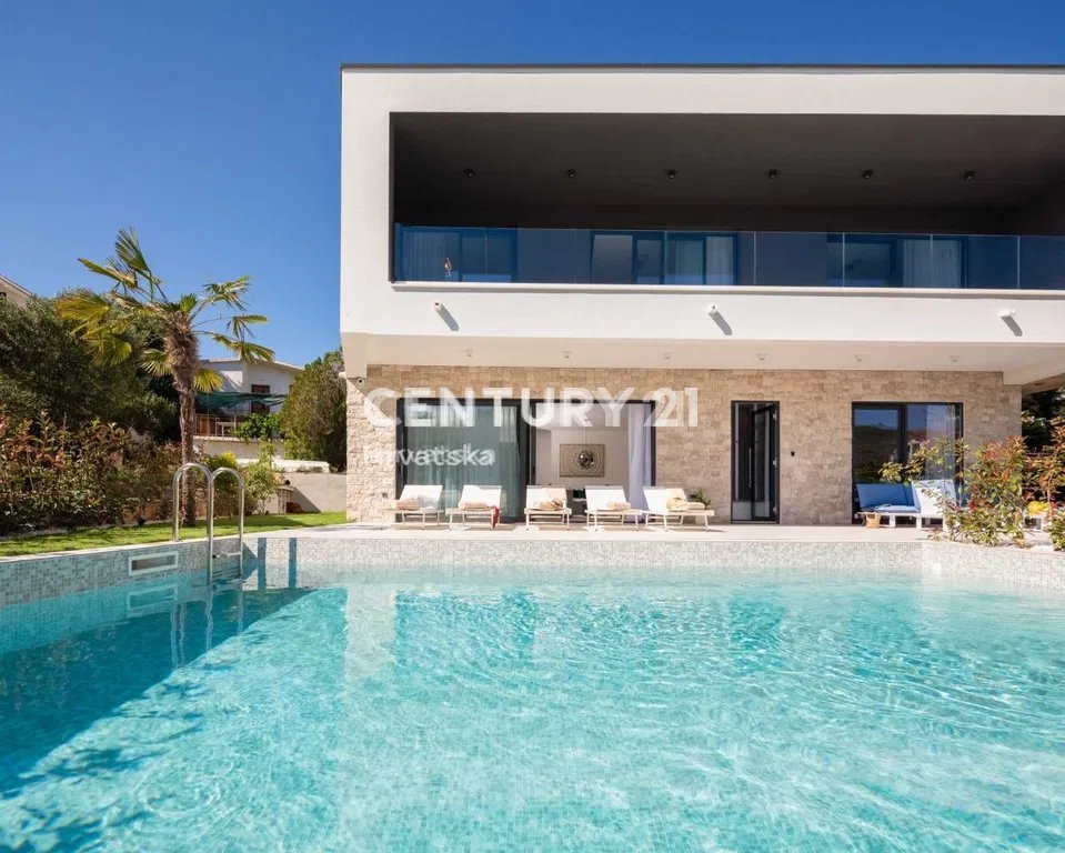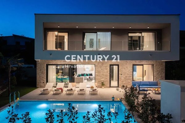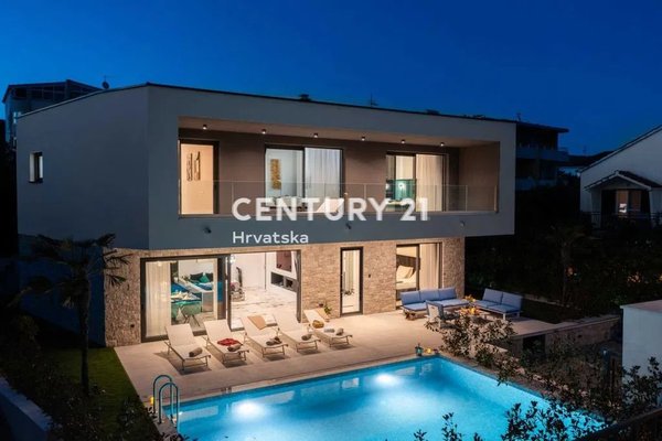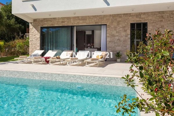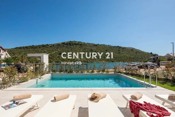 Villa with a swimming pool in the first row by the sea in Rogoznica.