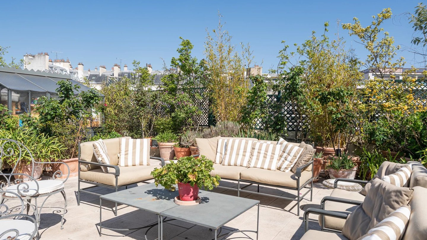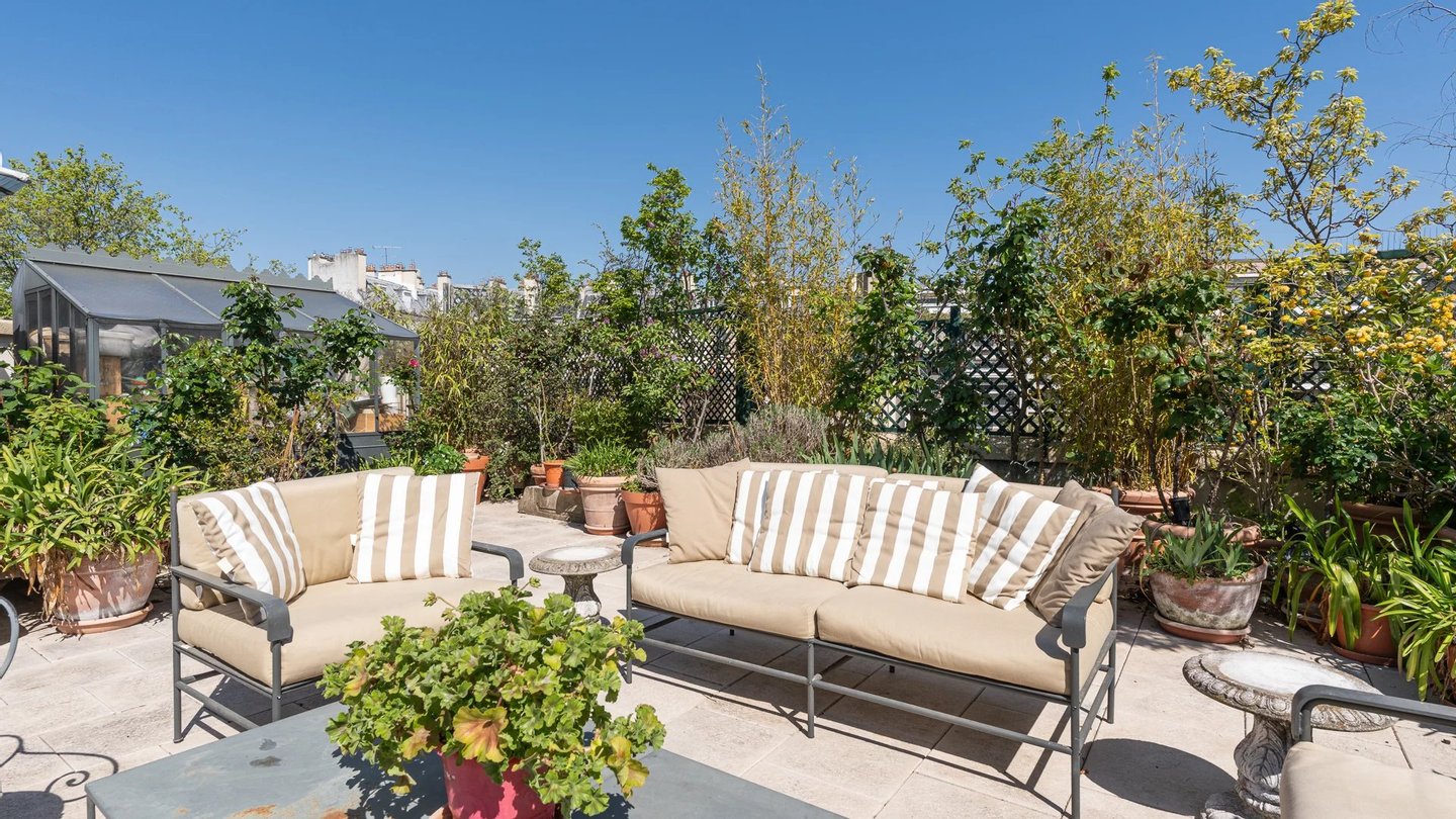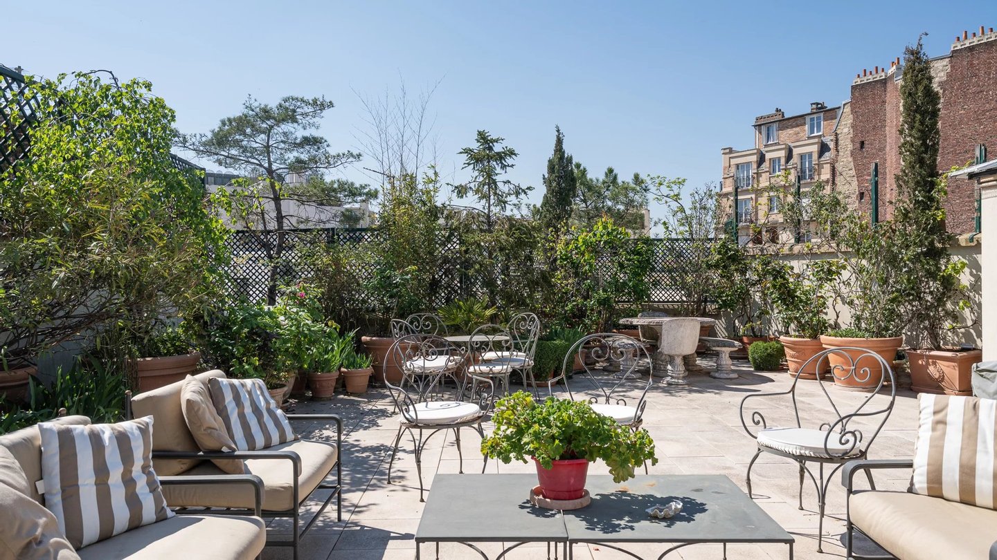 In absolute calm, this exceptional 480sqm mansion combines elegance and privacy. Two wooded gardens of 75sqm and 51sqm and a 124sqm roof terrace complete this privileged setting.