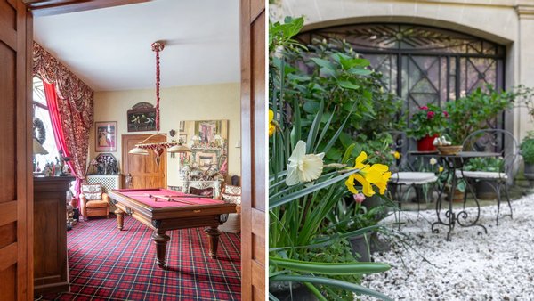 On the first floor, a generously proportioned entrance hall leads to a large family kitchen opening onto the garden, as well as a billiard and cinema room, which extends into a garden planted with camellias.